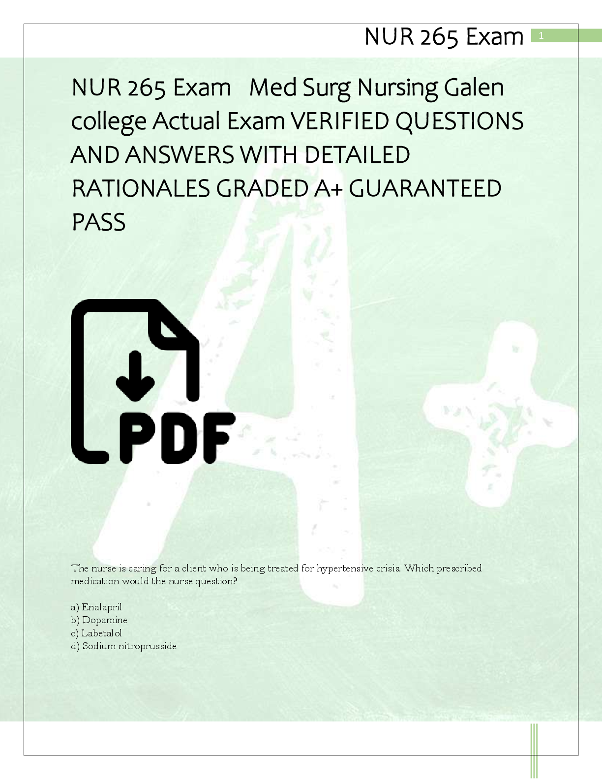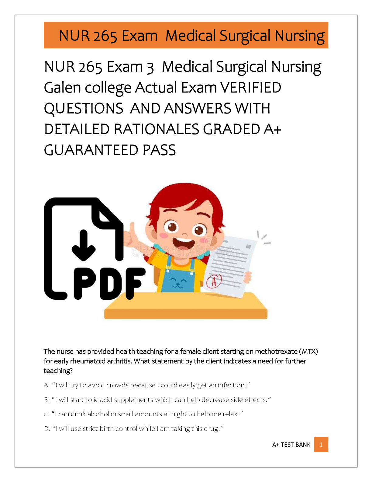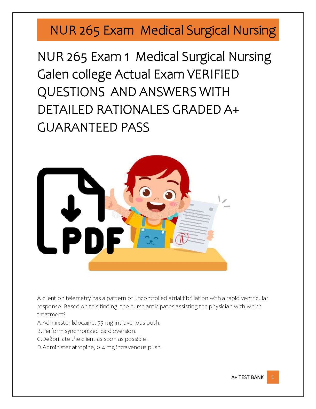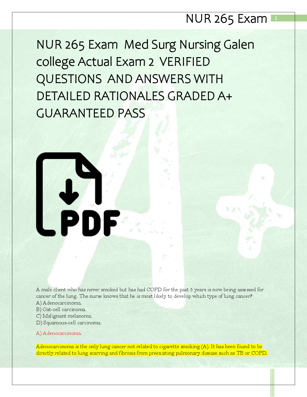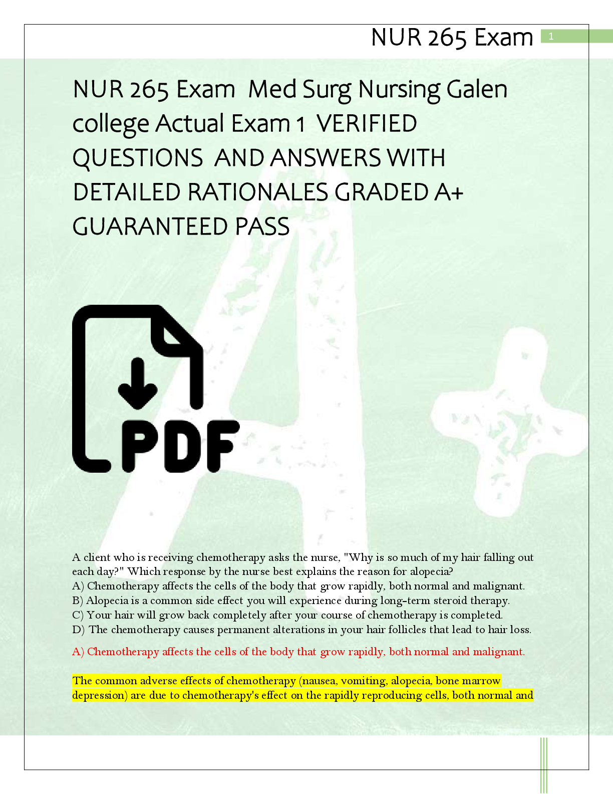 *NURSINGEXAM  > NUR 265 Exam Med Surg Nursing Galen college Actual Exam VERIFIED QUESTIONS AND ANSWERS WITH DETAILED RATIONALES GRADED A+ GUARANTEED PASS