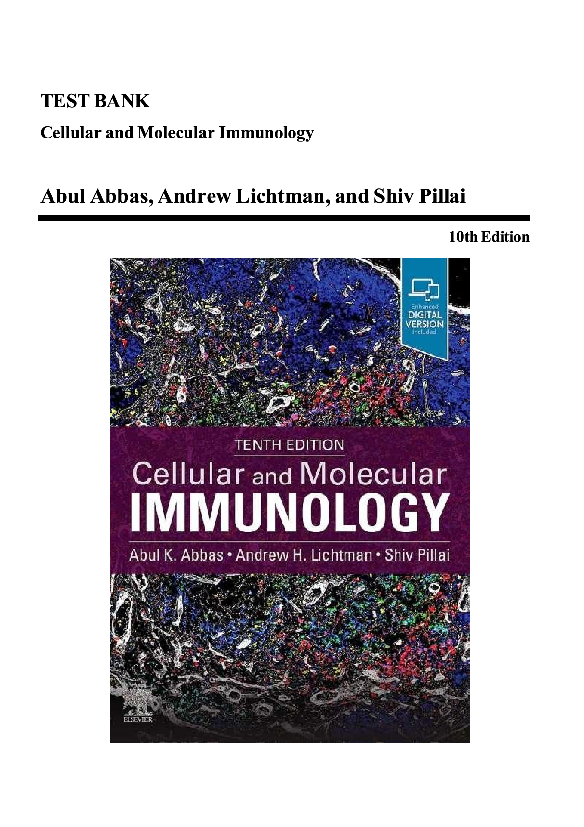 ImmunologyTEST BANKS  > Test Bank for Cellular and Molecular Immunology 10th Edition by Abbas, Lichtman & Pillai | Verified Questions & Answers | Complete Chapters | Downloadable PDF