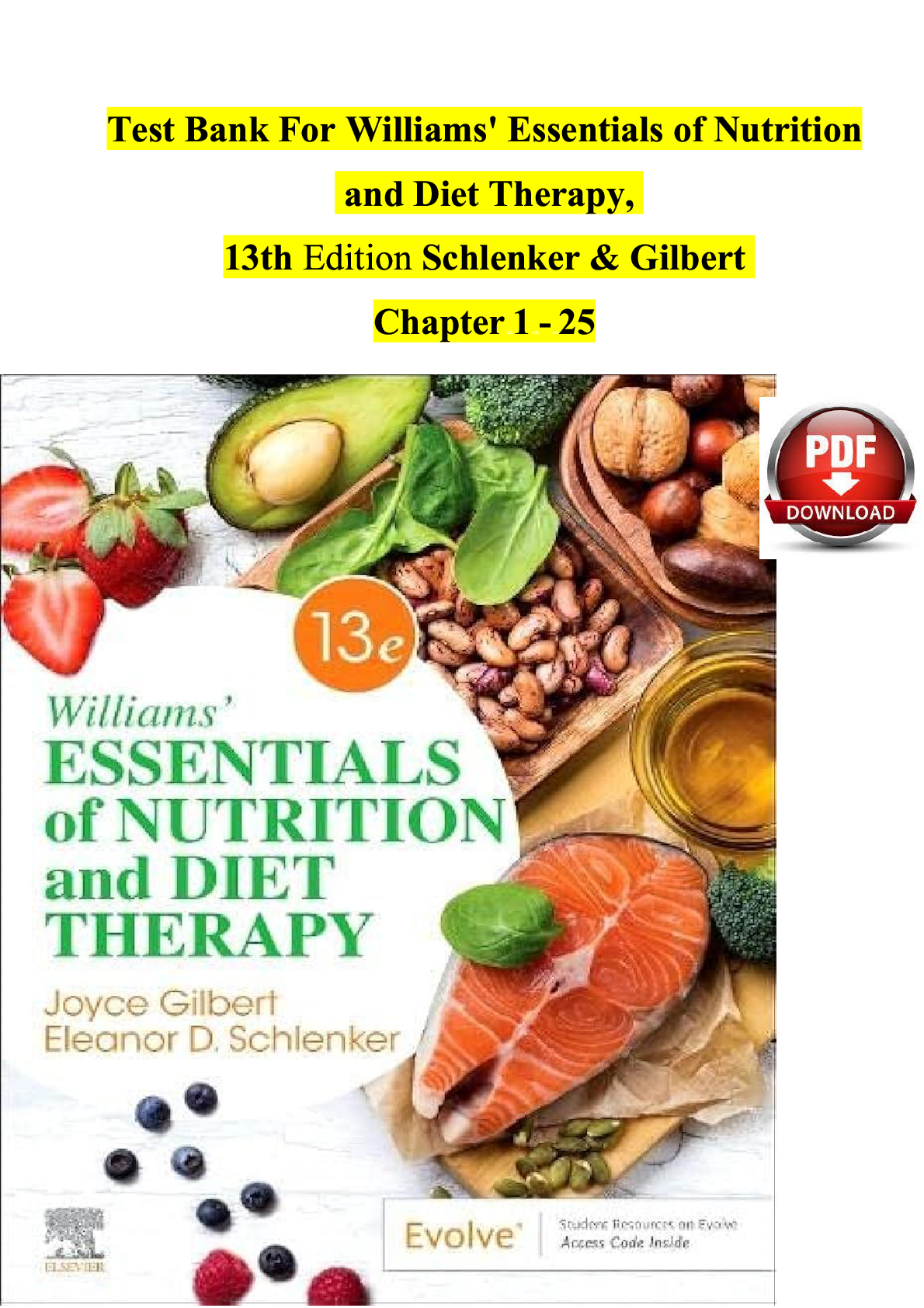 ESSENTIALS OF NUTRITIONTEST BANKS  > Test Bank for Williams' Essentials of Nutrition and Diet Therapy 13th Edition by Schlenker & Gilbert | Chapters 1-25 | Verified Questions & Answers | Downloadable PDF