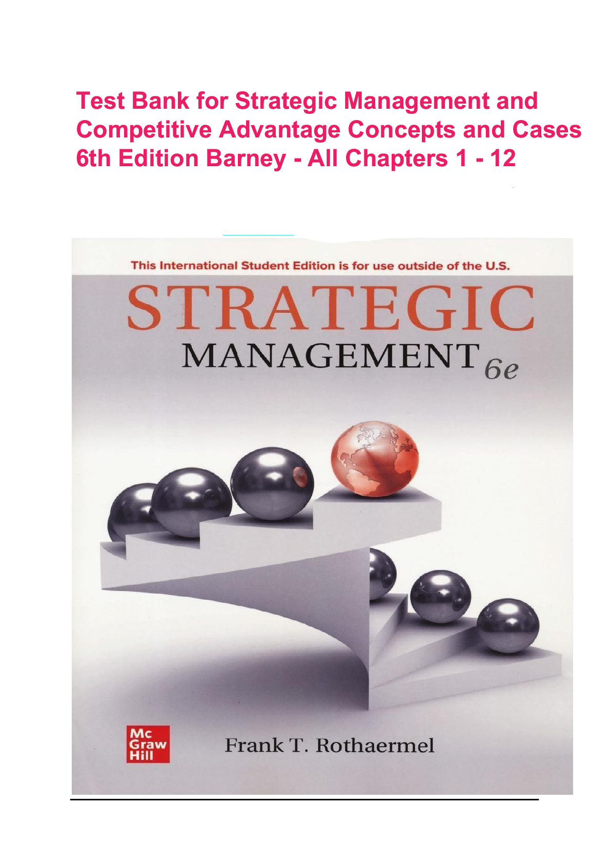 Business AdministrationTEST BANKS  > Test Bank for Strategic Management and Competitive Advantage 6th Edition by Barney & Hesterly | All Chapters 1-12 | Verified Questions & Answers | Downloadable PDF