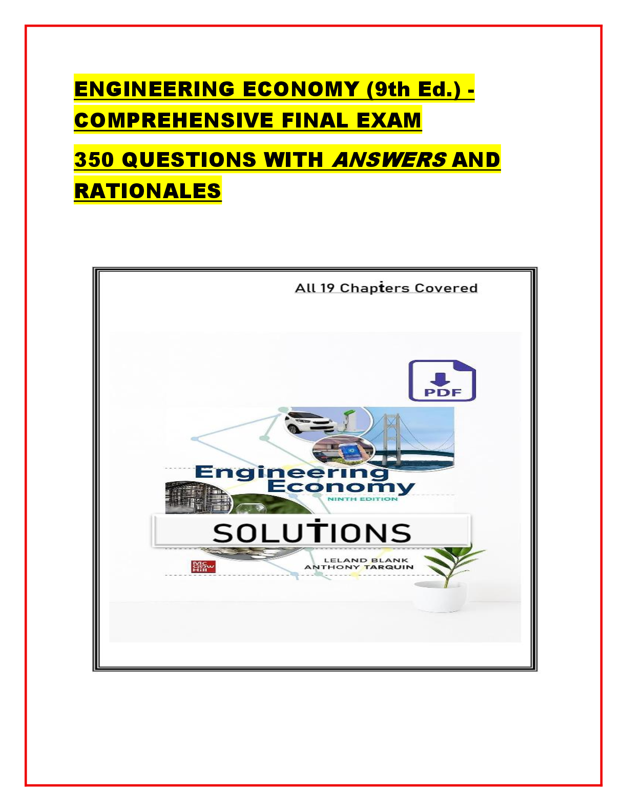 Engineering > TEST BANKS > ENGINEERING ECONOMY (9th Ed.) - COMPREHENSIVE FINAL EXAM 350 QUESTIONS WITH ANSWERS AND RATIONALES