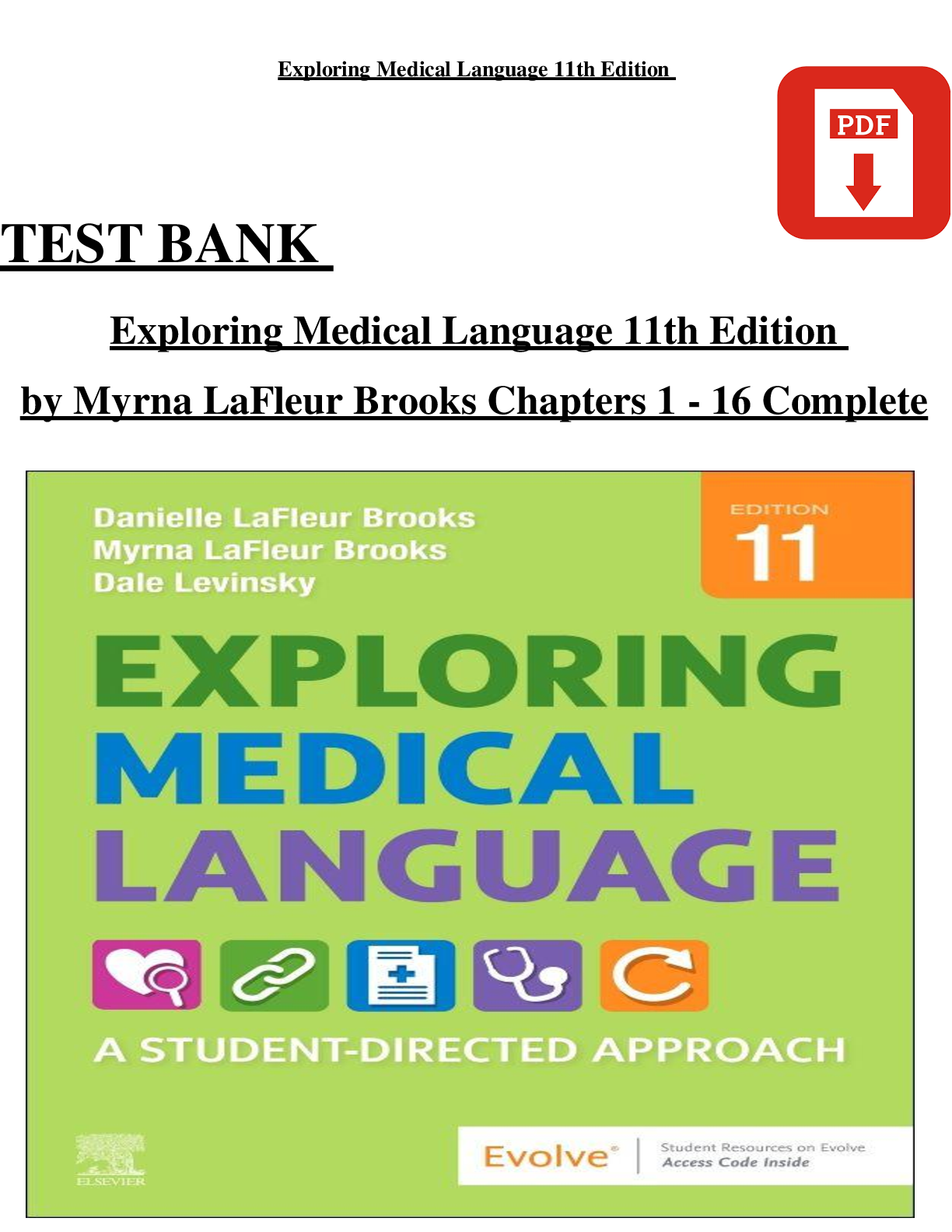 Medical Studies > TEST BANKS > Test Bank for Exploring Medical Language, 11th Edition by Myrna LaFleur Brooks | ISBN: 9780323711562 | Complete Chapters 1-16 | Verified Q&A | Downloadable PDF
