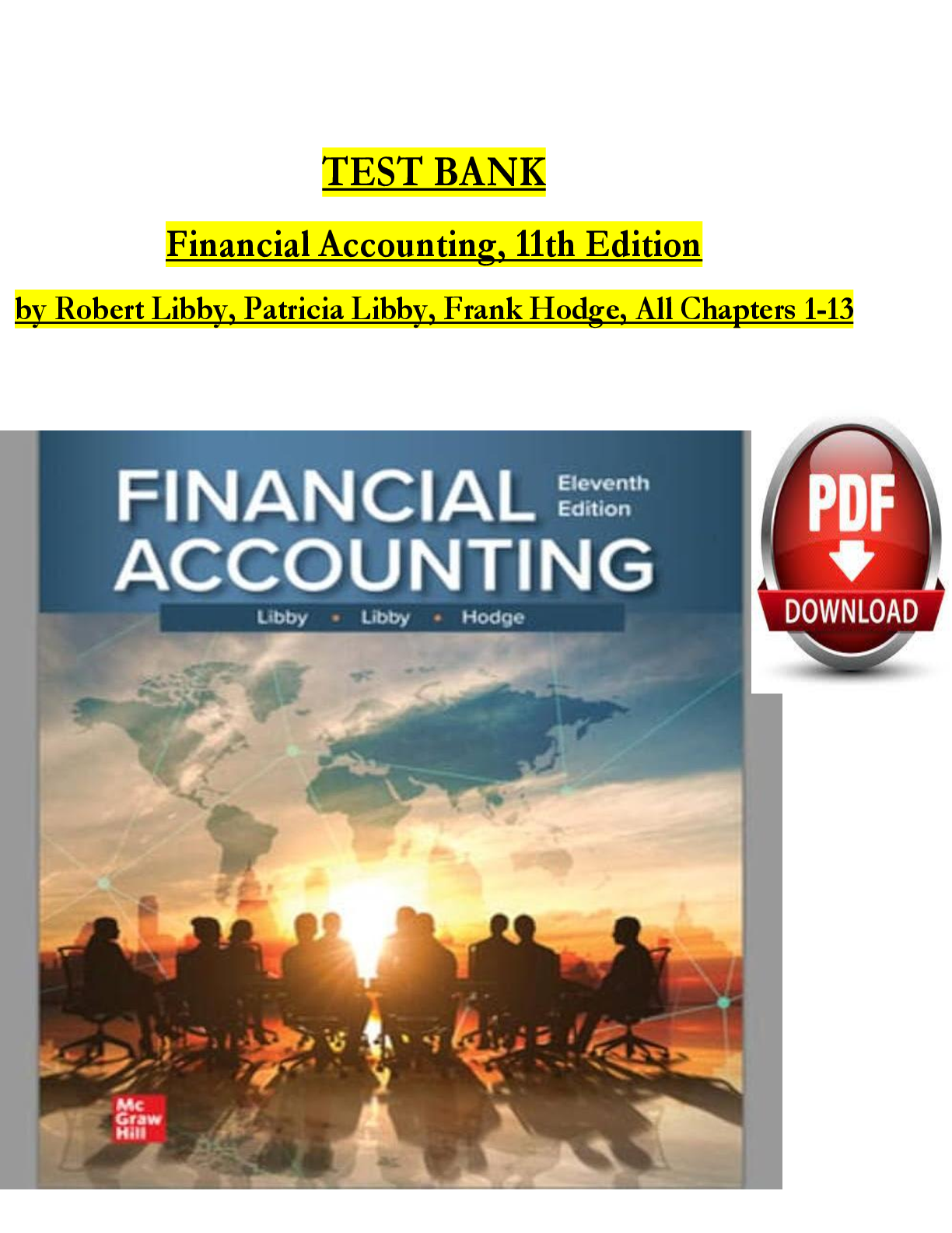 Financial Accounting > TEST BANKS > Test Bank for Financial Accounting, 11th Edition by Robert Libby, Patricia Libby & Frank Hodge | ISBN: 9781265083922 | Complete Verified Chapters 1-13 | Downloadable PDF