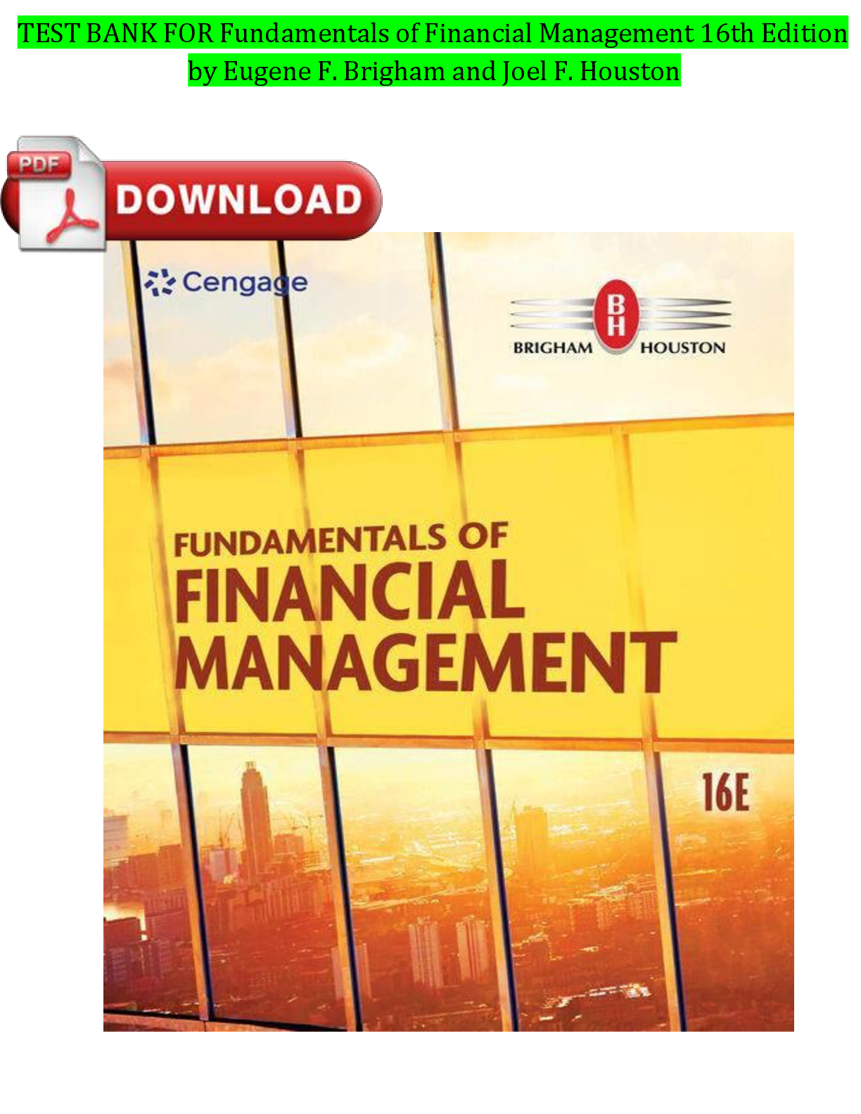 Finance > TEST BANKS > Test Bank for Fundamentals of Financial Management, 16th Edition by Eugene F. Brigham & Joel F. Houston | ISBN: 9780357517574 | Complete Verified Chapters 1-21 | Downloadable PDF