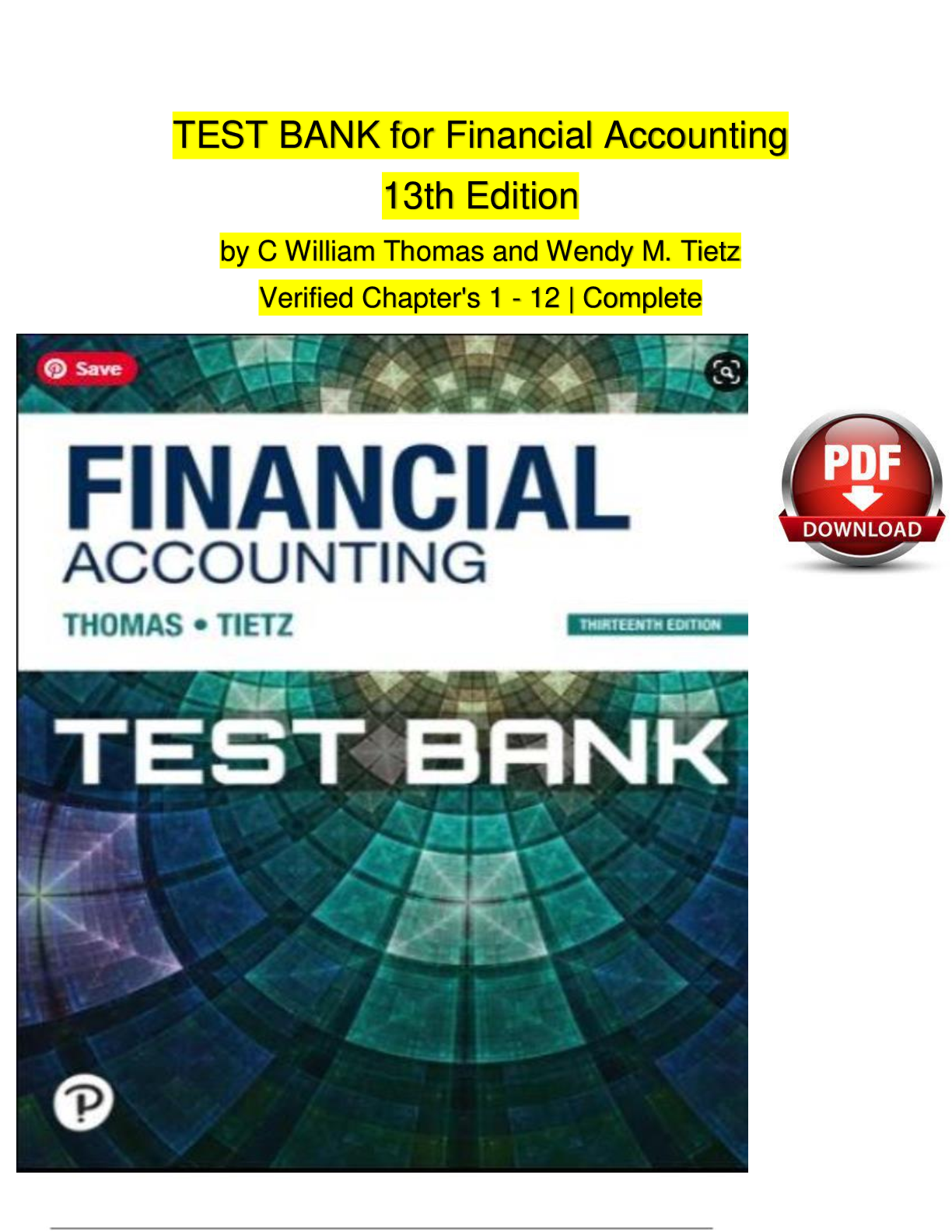 Financial Accounting > TEST BANKS > Test Bank for Financial Accounting, 13th Edition by C. William Thomas & Wendy M. Tietz | ISBN: 9780136972266 | Verified Chapters 1-12 Complete | Downloadable PDF
