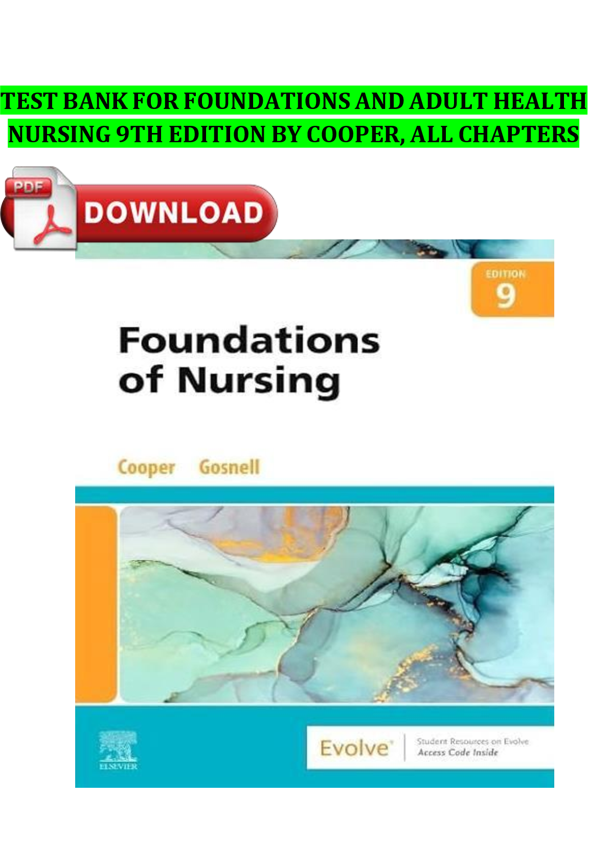 Medical-Surgical Nursing > TEST BANKS > Test Bank for Foundations and Adult Health Nursing, 9th Edition by Kim Cooper & Kelly Gosnell | ISBN: 9780323812054 | Chapters 1-58 | NCLEX-PN® & NGN Style Q&A | Downloadable PDF