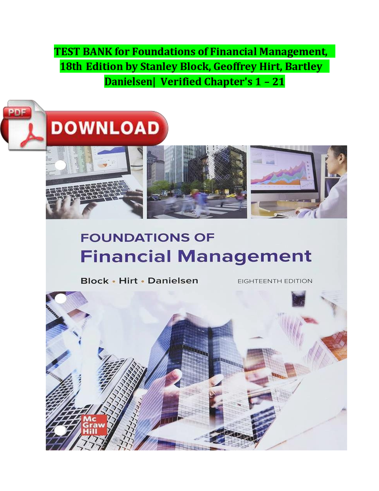 WGU C214 Financial Management > TEST BANKS > Test Bank for Foundations of Financial Management, 18th Edition by Stanley Block, Geoffrey Hirt & Bartley Danielsen | ISBN: 9781264097623 | Complete Chapters 1-21 | Downloadable PDF