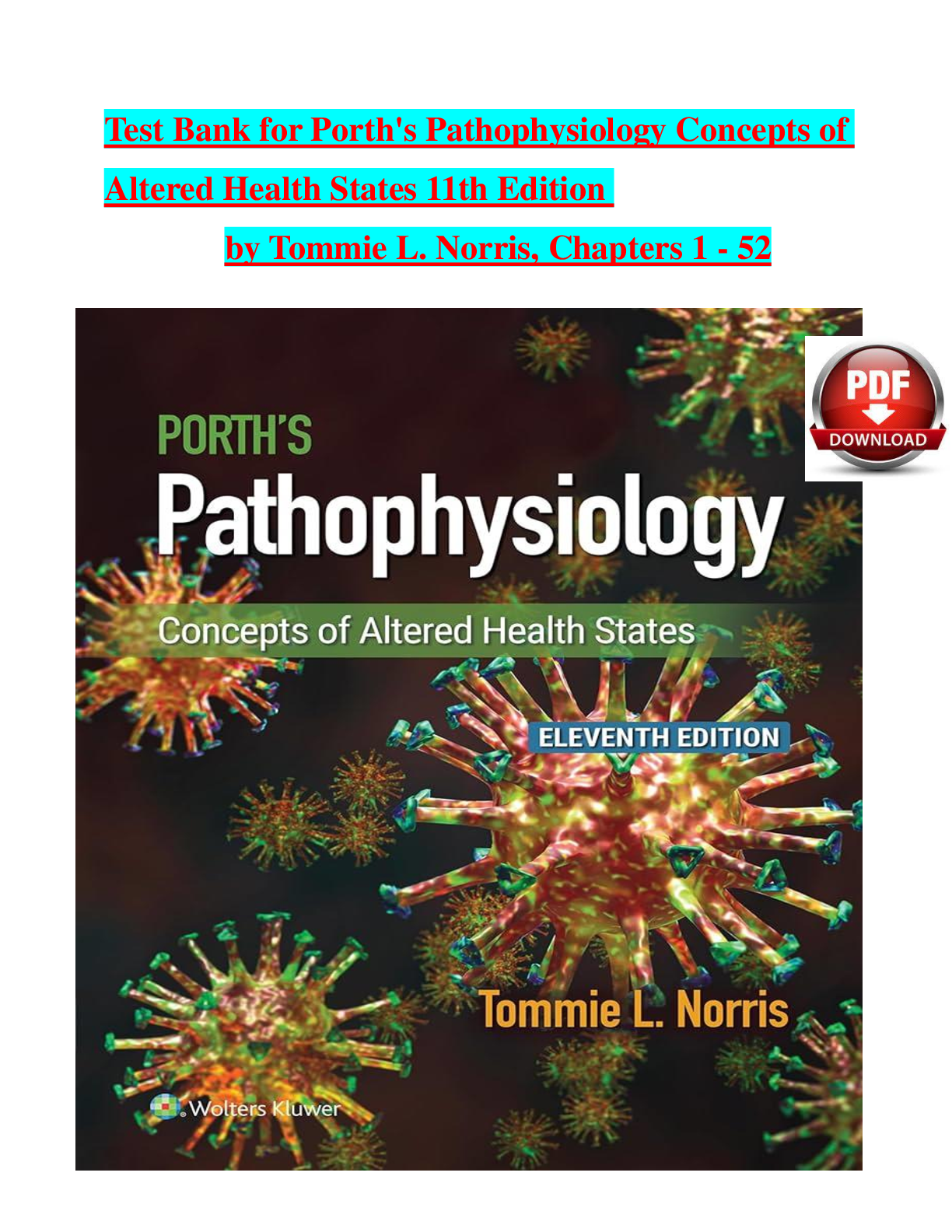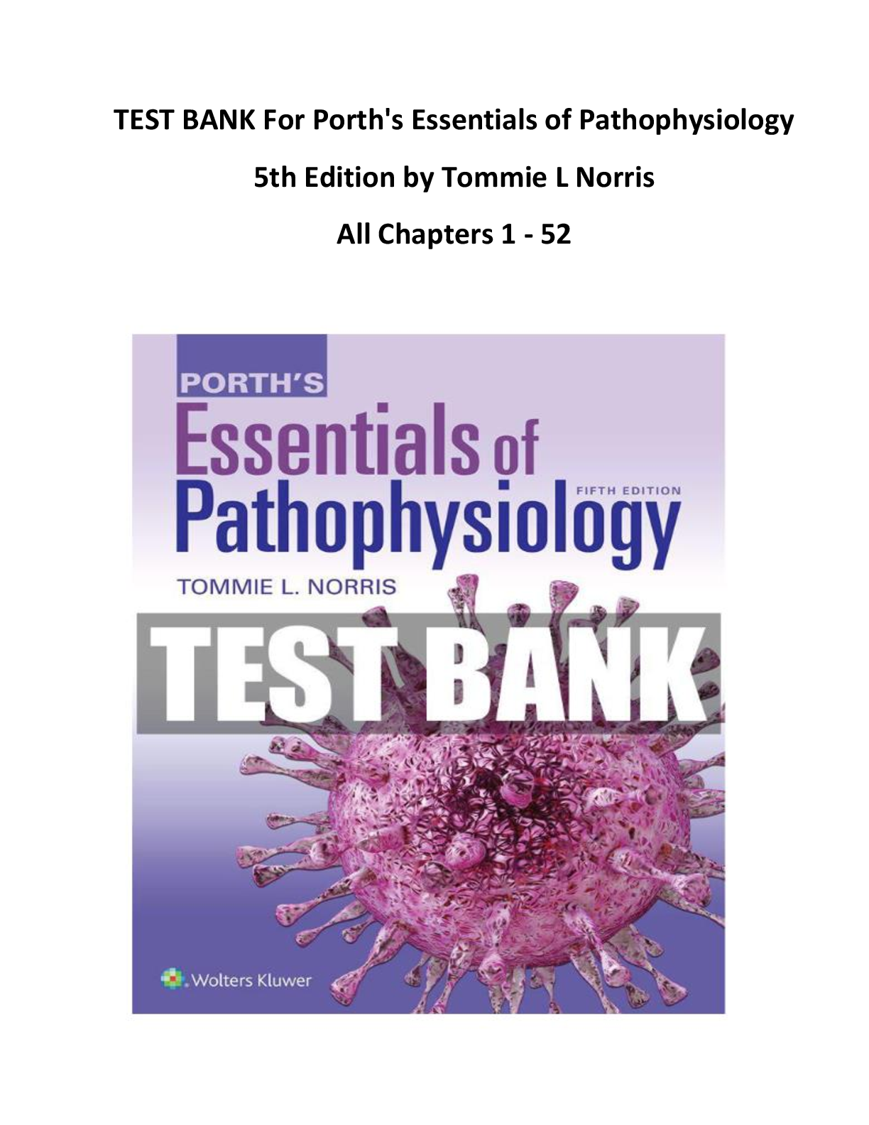 Pathophysiology > TEST BANKS > Test Bank for Porth's Pathophysiology: Concepts of Altered Health States, 11th Edition by Tommie L. Norris | ISBN: 9781975176846 | Complete Chapters 1-52 | Verified Q&A | Downloadable PDF