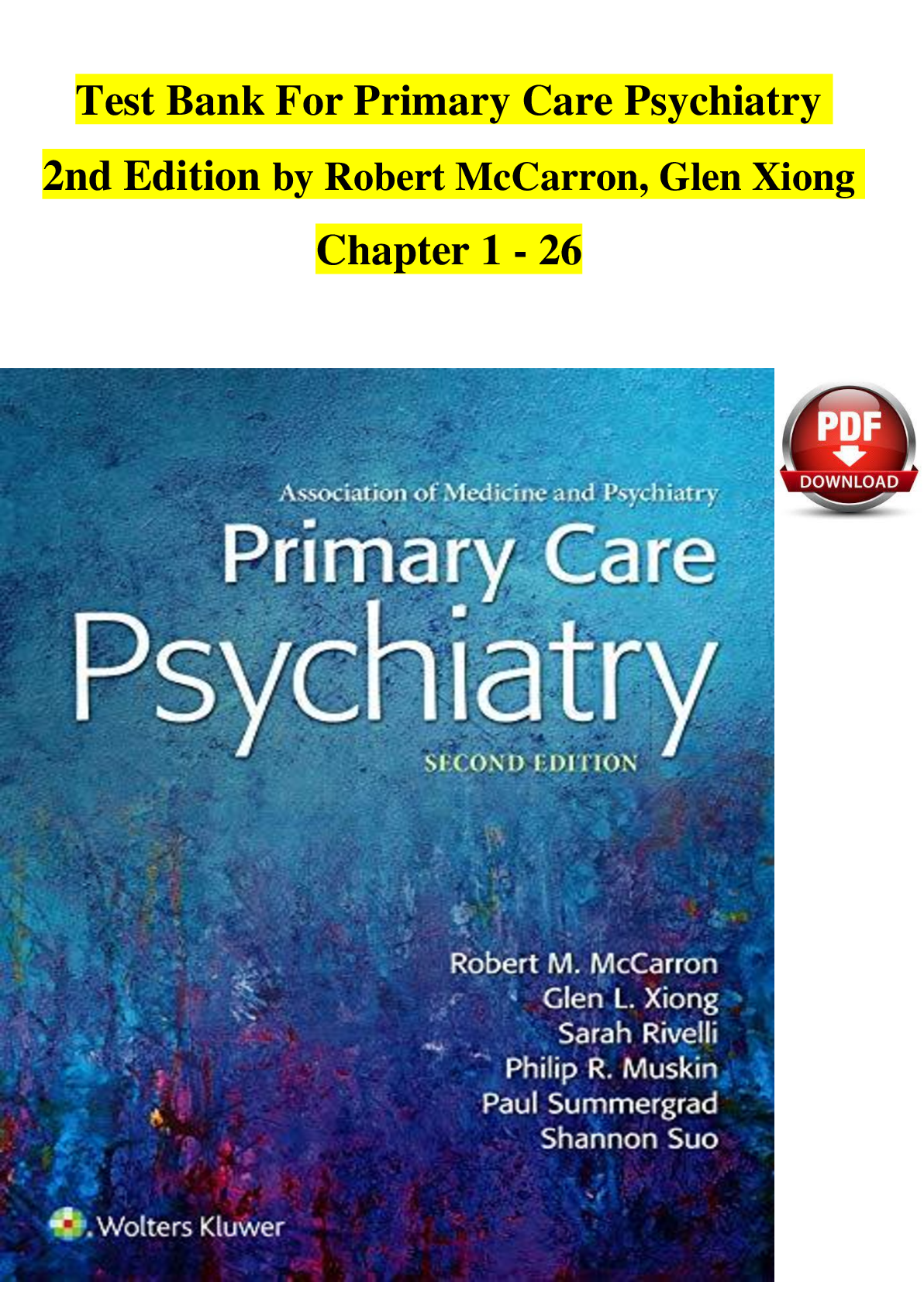 Psychiatry > TEST BANKS > Test Bank for Primary Care Psychiatry, 2nd Edition by McCarron, Xiong, Suo, Summergrad, Muskin & Rivelli | ISBN: 9781496349217 | Complete Chapters 1-26 | Verified Q&A | Downloadable PDF
