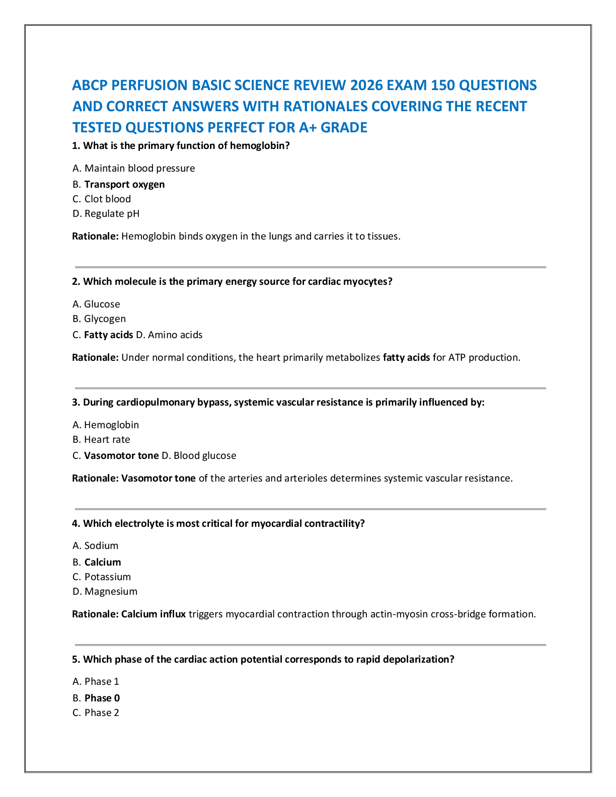 *NURSING > EXAM > ABCP PERFUSION BASIC SCIENCE REVIEW 2026 EXAM 150 QUESTIONS AND CORRECT ANSWERS WITH RATIONALES COVERING THE RECENT TESTED QUESTIONS PERFECT FOR A+ GRADE