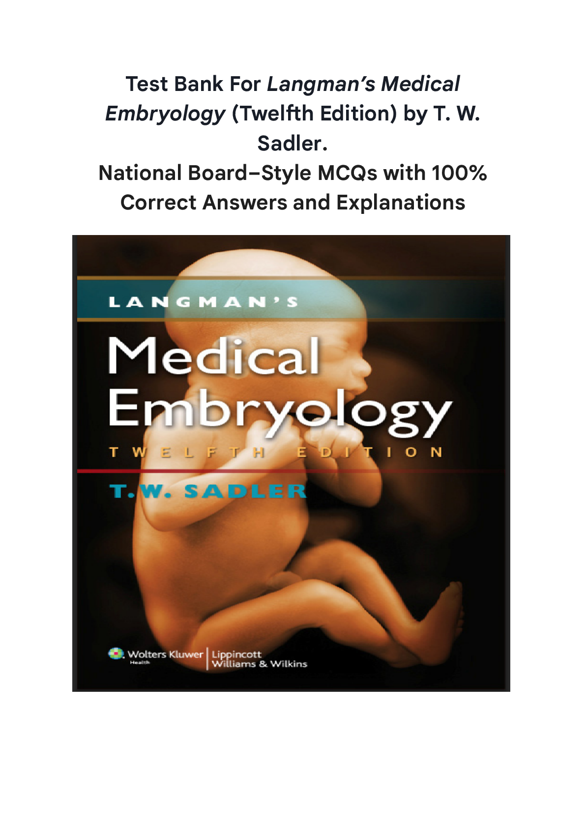 Medical Studies > TEST BANKS > Test Bank For Langman’s Medical Embryology (Twelfth Edition) by T. W. Sadler. National Board–Style MCQs with 100% Correct Answers and Explanations A+