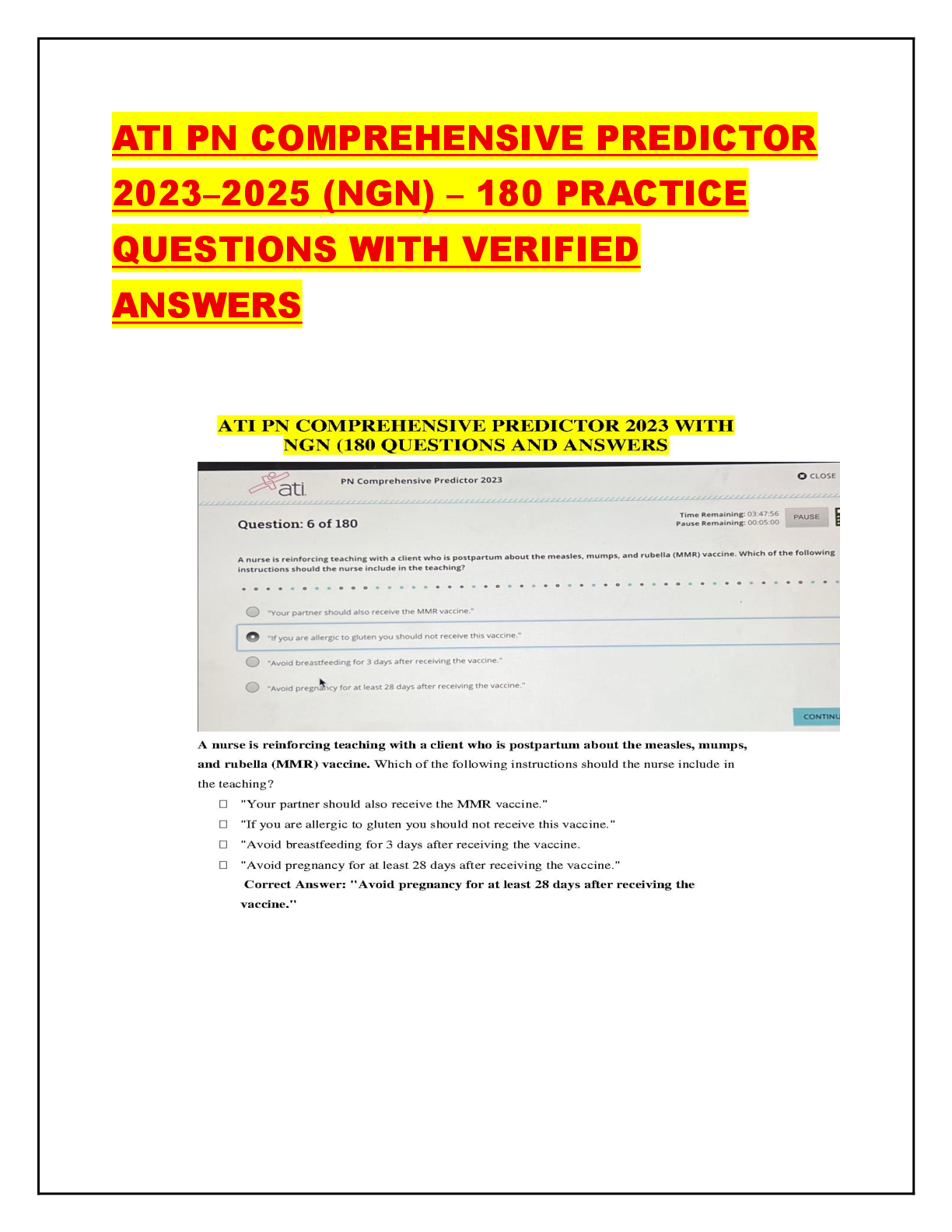1470 ALL PRACTICE EXAM QUESTIONS AND ANSWERS FOR PN MEDICAL-SURGICAL ADULT MEDICAL SURGICAL 2022 100% CORRECT ANSWERED QUESTIONS WITH EXPLANATION