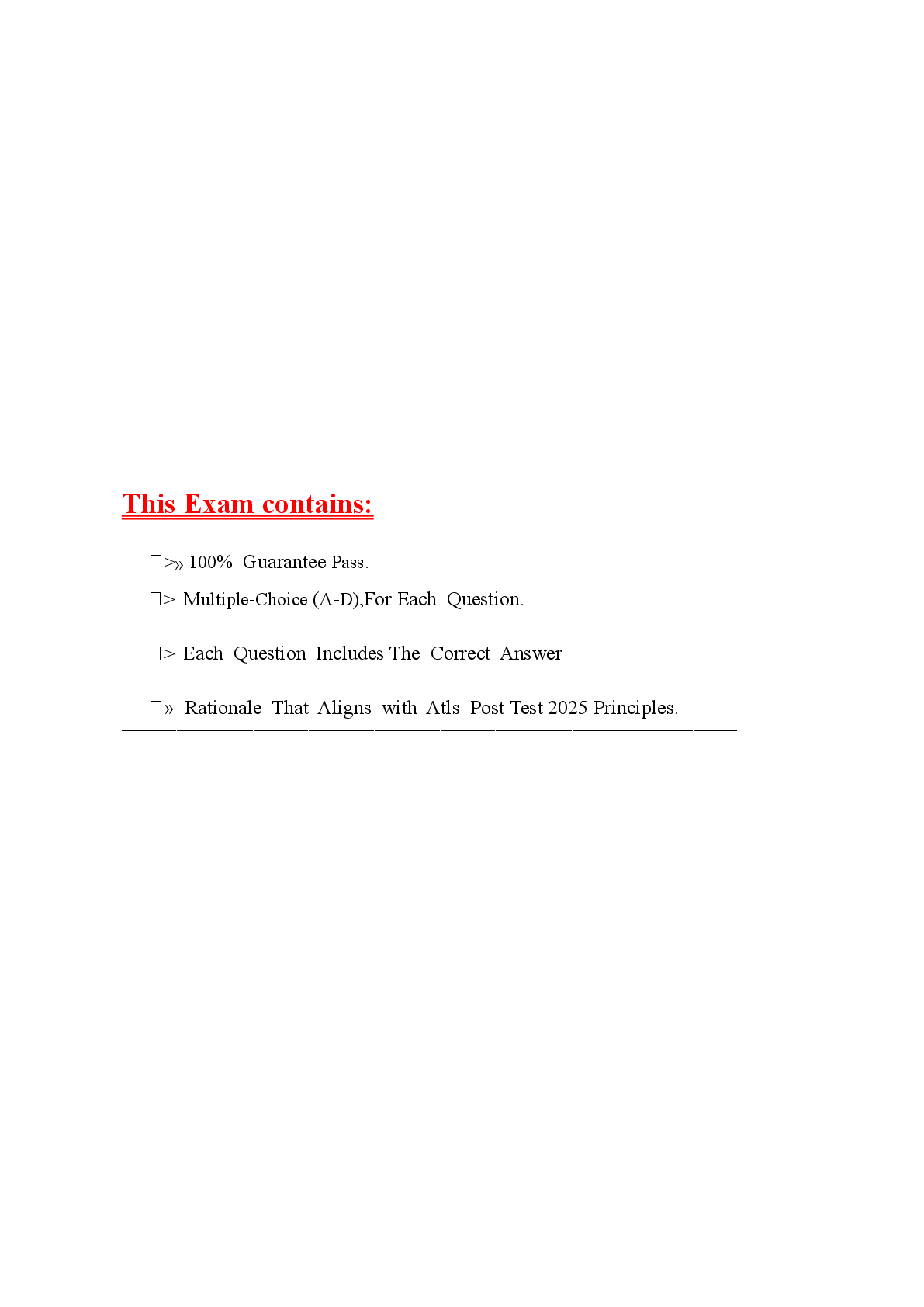 *NURSING > QUESTIONS and ANSWERS > ATLS 10th Edition Post Test Actual Questions with Verified Answers 2025/2026 100% Guaranteed SCORE