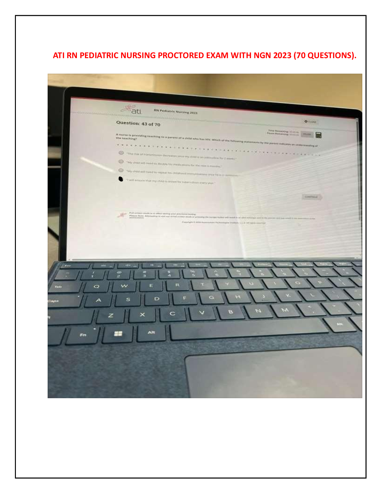 *NURSING > EXAM > ATI PEDIATRIC PROCTORED EXAM 2023 WITH NGN QUESTIONS AND CORRECT ANSWERS.