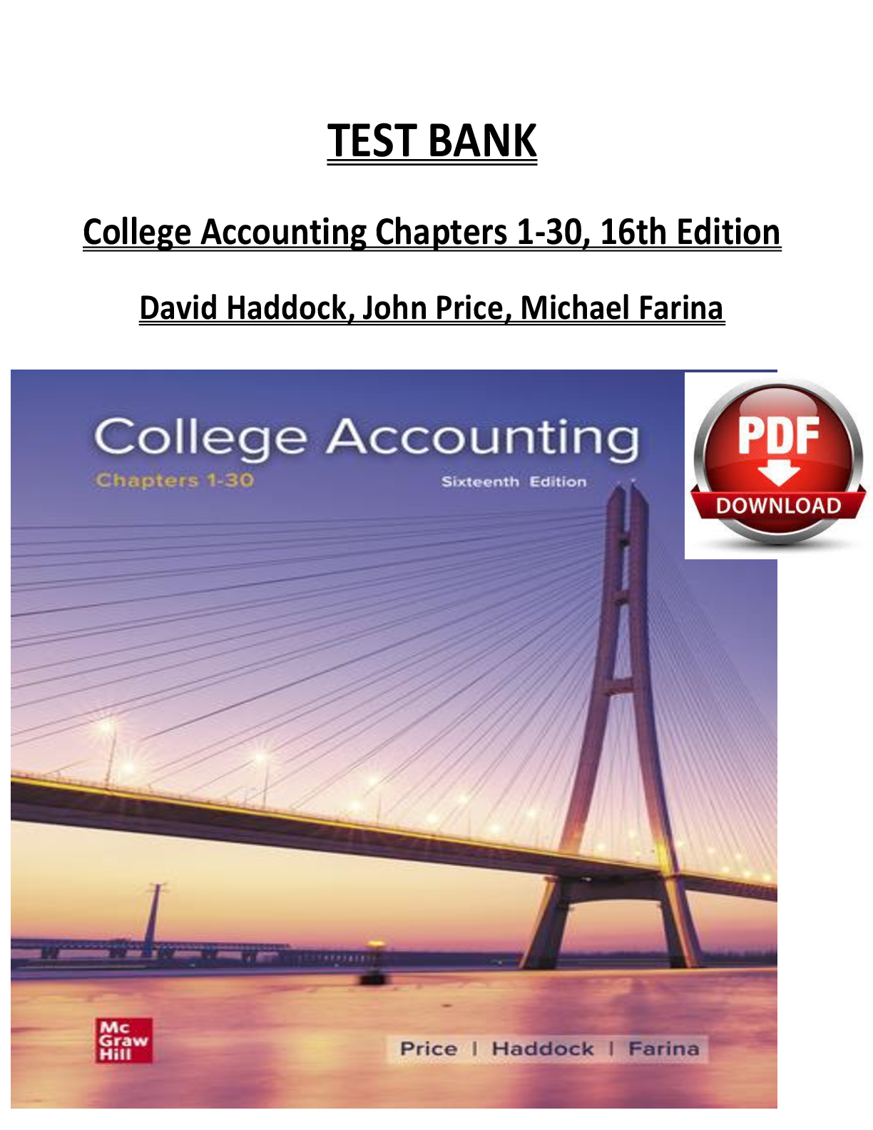 Accounting > TEST BANKS > Test Bank for College Accounting, 16th Edition by David Haddock, John Price & Michael Farina | ISBN: 9781260780277 | Complete Verified Chapters 1-30 | Q&A with Answers | Downloadable PDF
