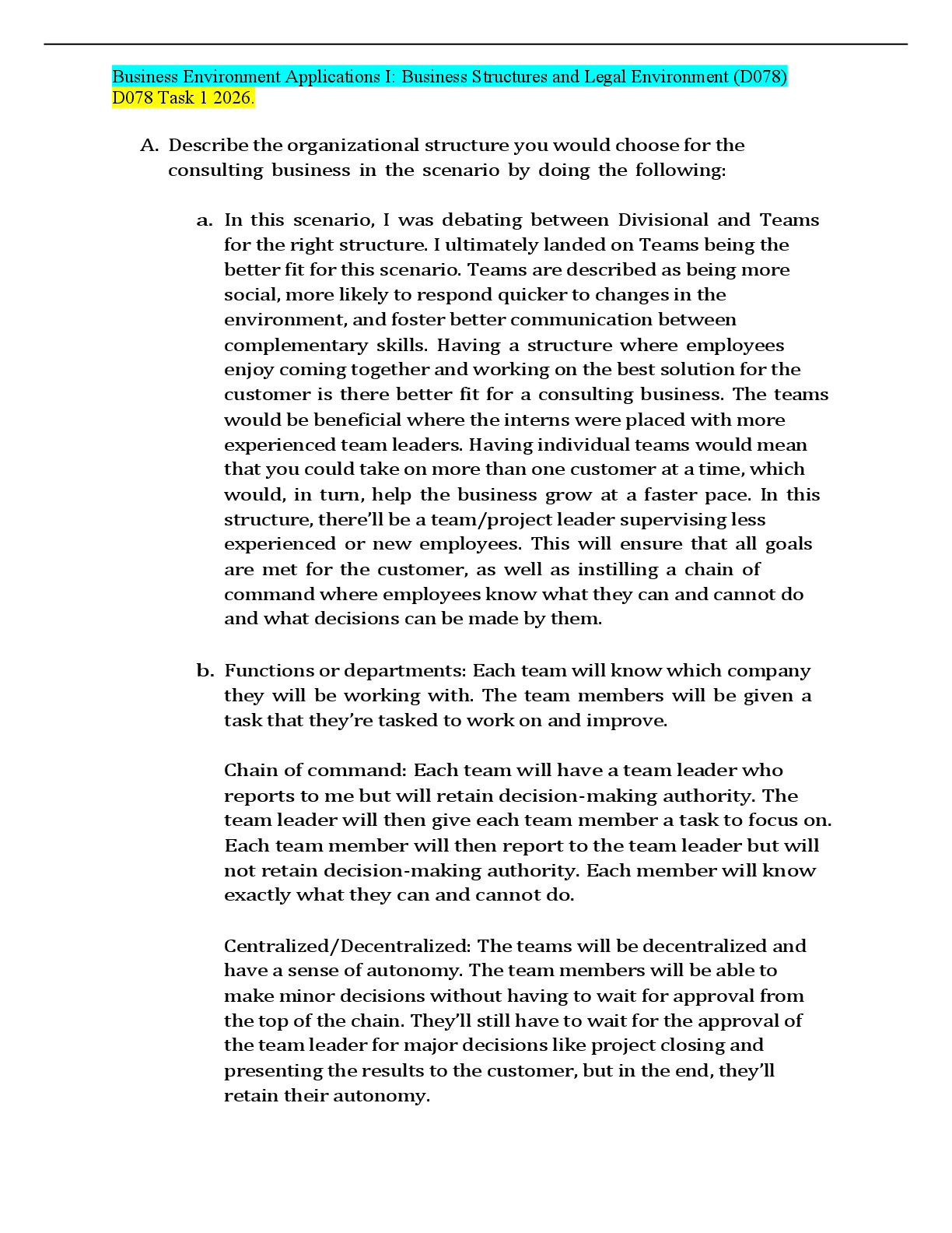 Business > WGU TASKs > Business Environment Applications I:D078 Tasks 1 & 2 | WGU D078 Answered Latest Spring 2026.