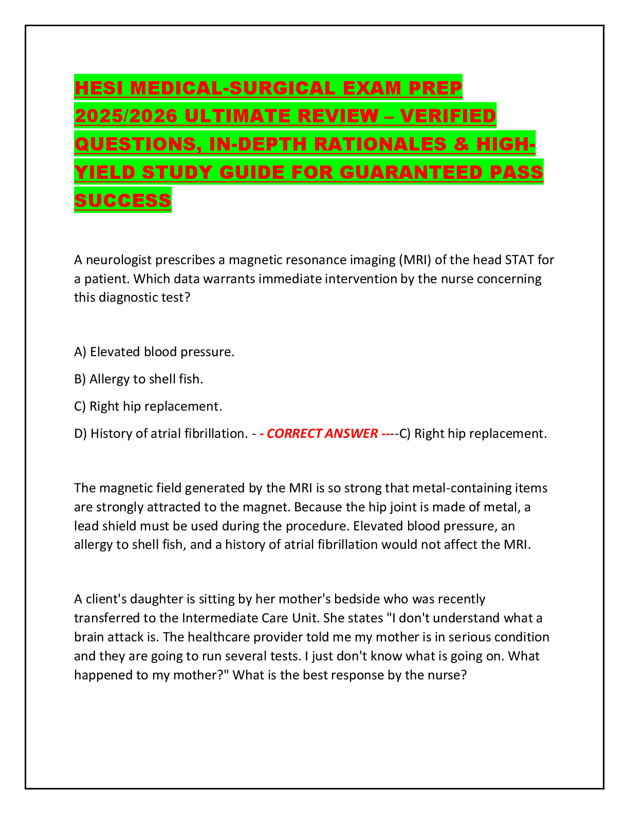 *NURSING > HESI > HESI MEDICAL-SURGICAL EXAM PREP 2025/2026 ULTIMATE REVIEW – VERIFIED QUESTIONS, IN-DEPTH RATIONALES & HIGH-YIELD STUDY GUIDE FOR GUARANTEED PASS SUCCESS
