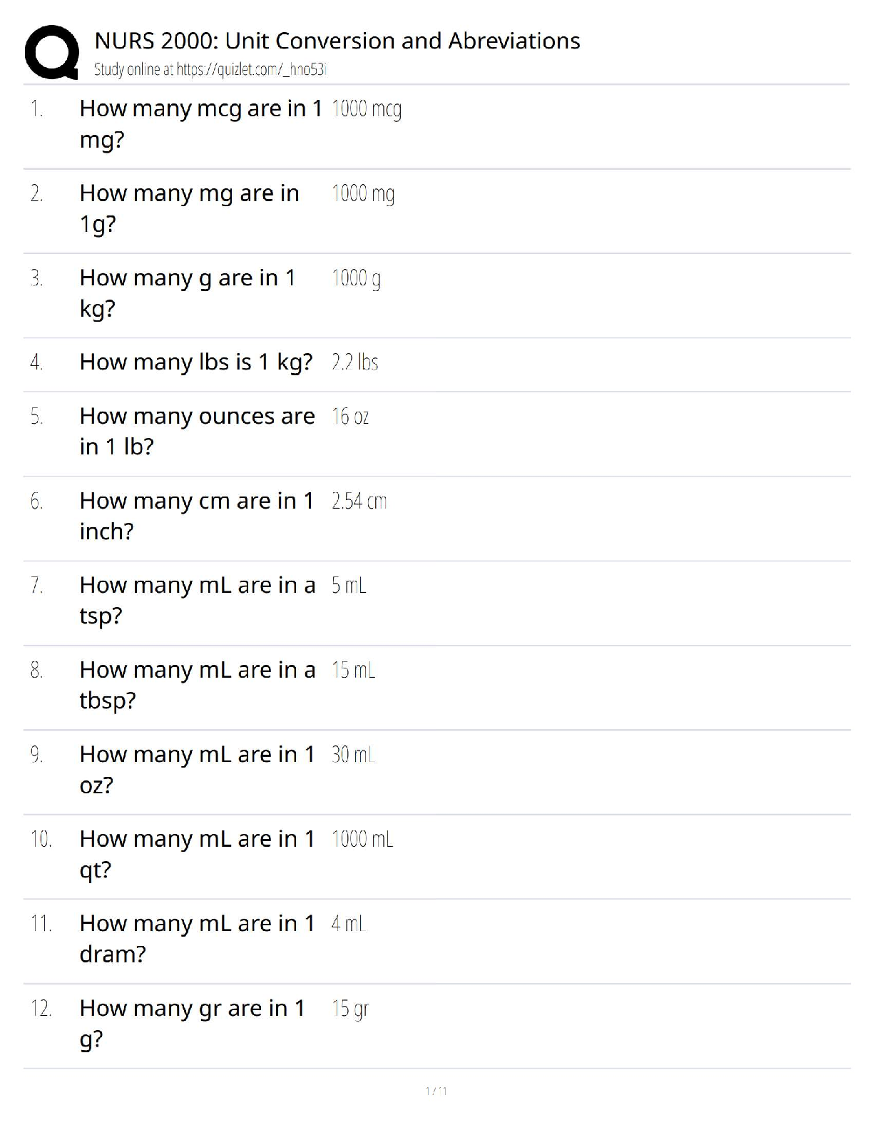*NURSING > QUESTIONS & ANSWERS > NURS 2000 / Unit Conversion & Abbreviations / Study Guide / Test Bank / Questions & Answers / 2025 Update