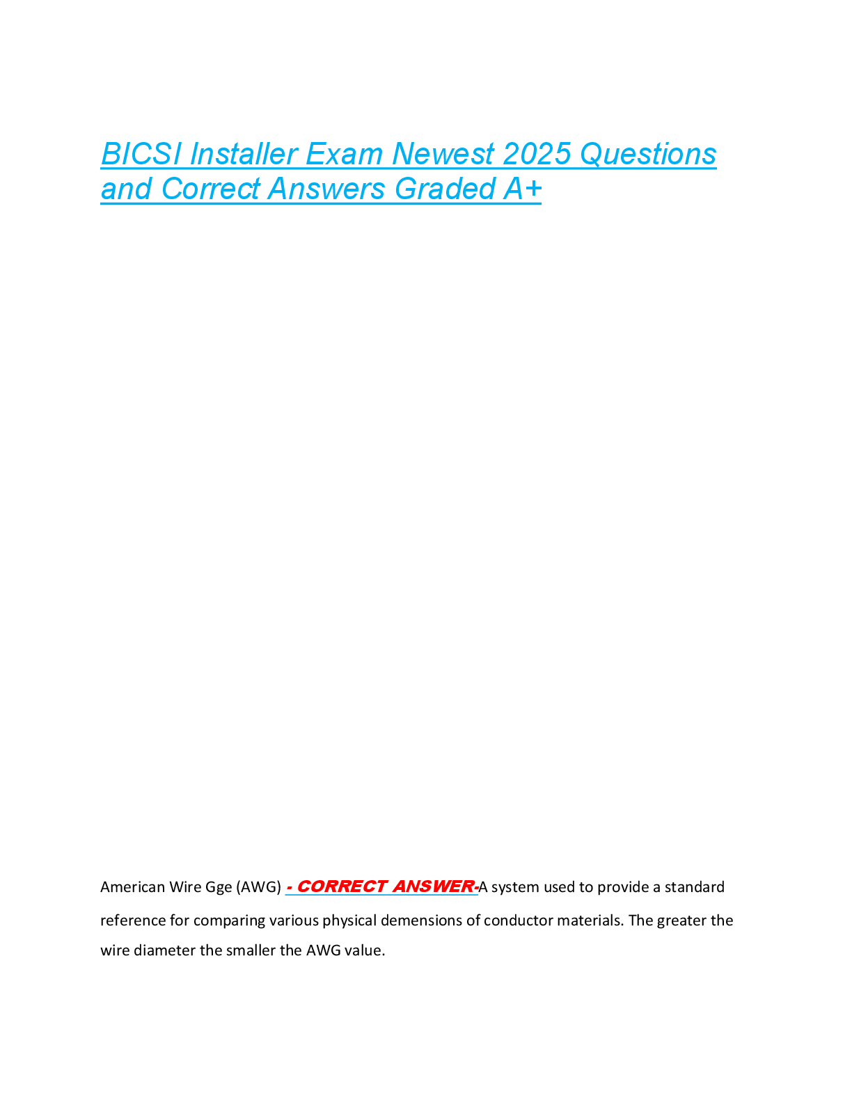 *NURSING > EXAM > BICSI Installer Exam Newest 2025 Questions and Correct Answers Graded A+
