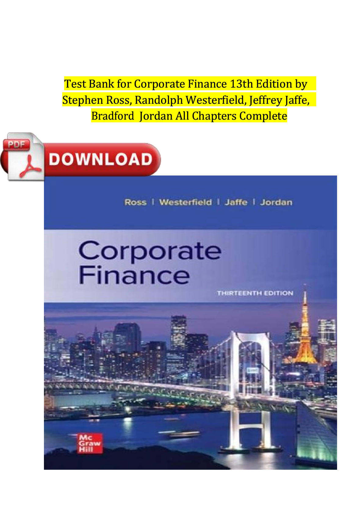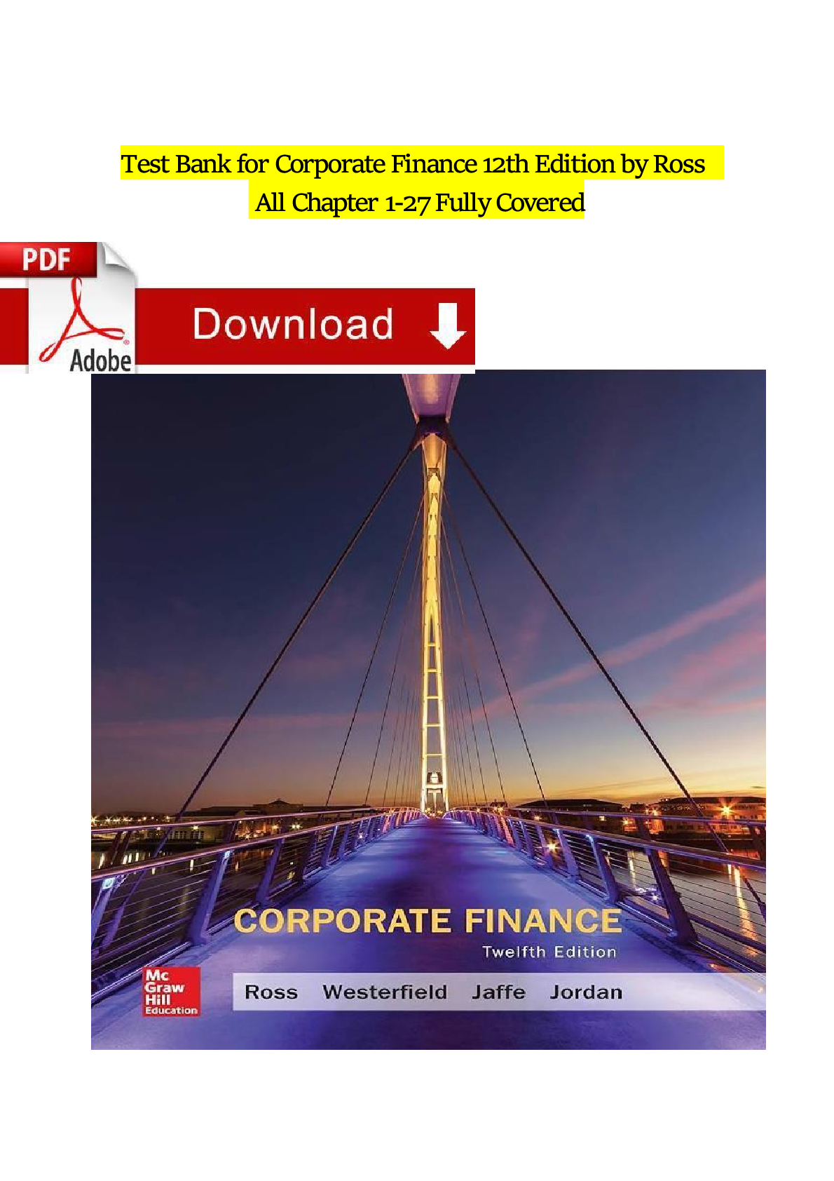 Finance > TEST BANKS > Test Bank for Corporate Finance 12th Edition by Ross, Westerfield & Jaffe | All Chapters 1-27 | Verified Questions & Answers | Downloadable PDF