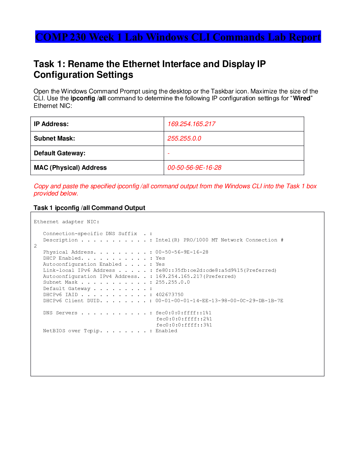 COMP 230 Week 1 Lab Windows CLI Commands Lab Report|Week 2 Lab VBScript IPO Lab Report|Week 3 Lab VBScript Network Shares Lab Report| Week 4 Lab VBScript IP Array|Week 5 Lab VBScript Modular Lab Repor...