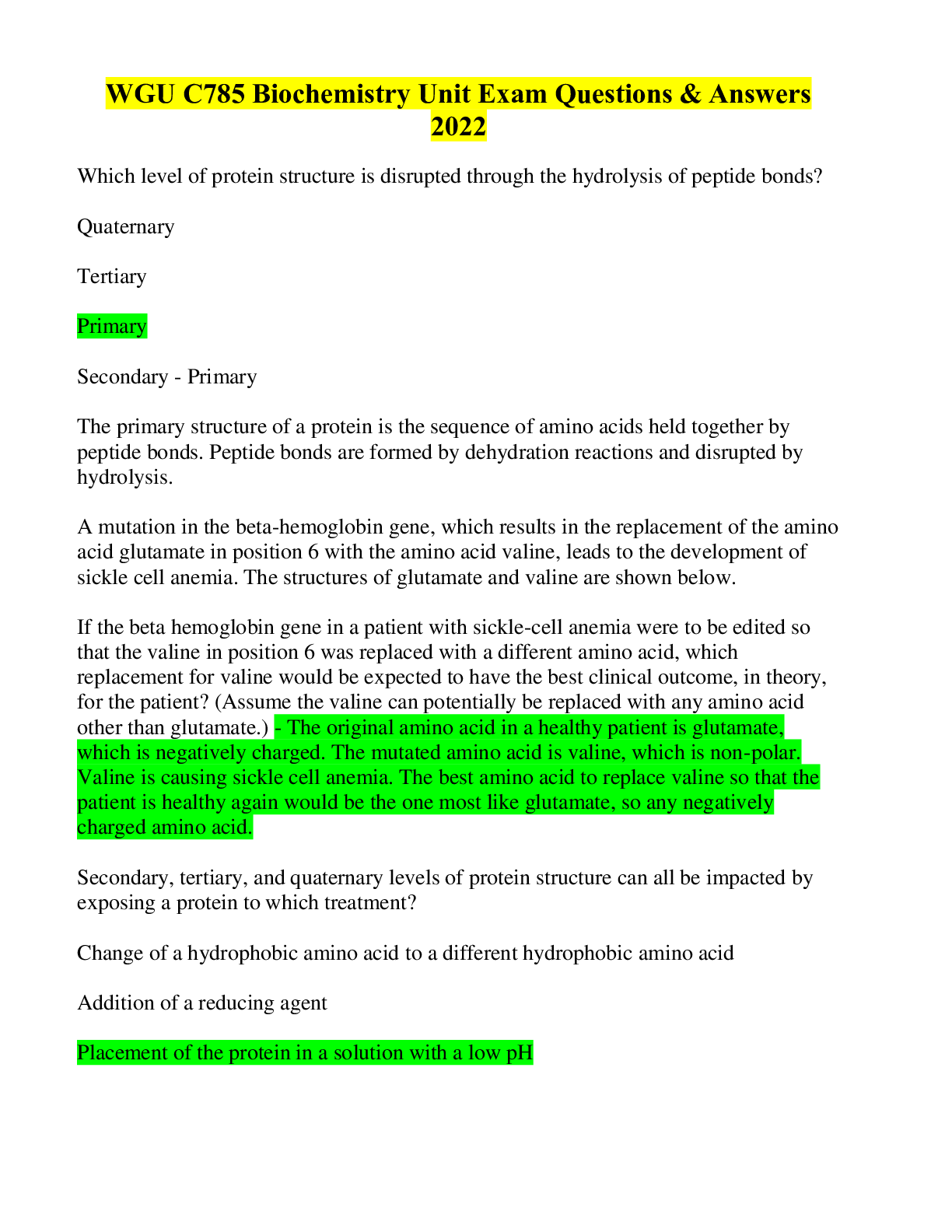 WGU Biochemistry 785 Full Solution Pack, Bundled Verified Exam With Complete Graded 100% Solutions, Latest