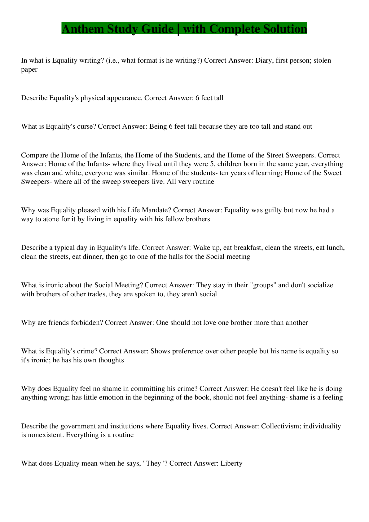Government > STUDY GUIDE > Anthem study guide Chapter 1-12 | with Complete Solution (All)