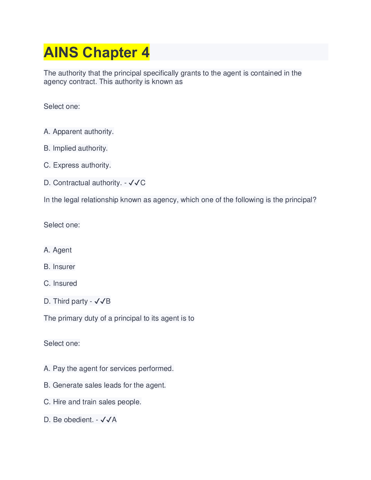 Business > STUDY GUIDE > AINS 21 Final Exam Study Guide | with Complete Solution (All)