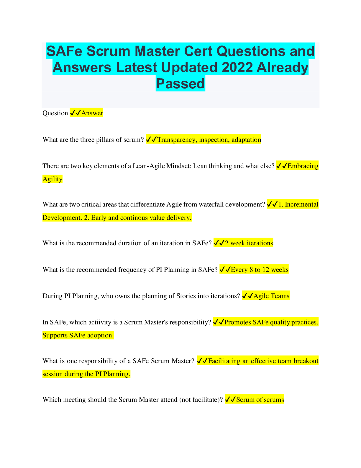 Programming > EXAM > SAFe Scrum Master Study Guide 5.0 Already Passed, Latest 2022 (All)