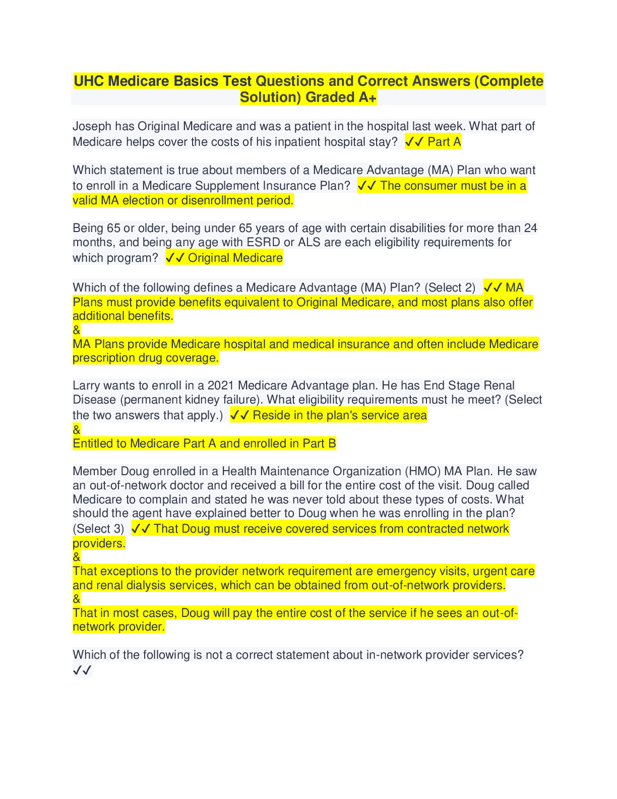 UHC Medicare Basics Test Questions and Correct Answers (Complete Solution) Graded A+ UHC Medicare Basics Test 2023 Latest Graded A+ UHC BASIC KB22 Exam Questions and Correct Answers (Complete So...