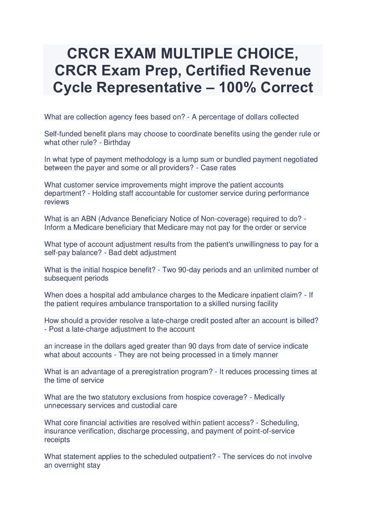 CRCR (Certified Revenue Cycle Representative) Bundled Exams with completed solution |Latest and 100% verified.