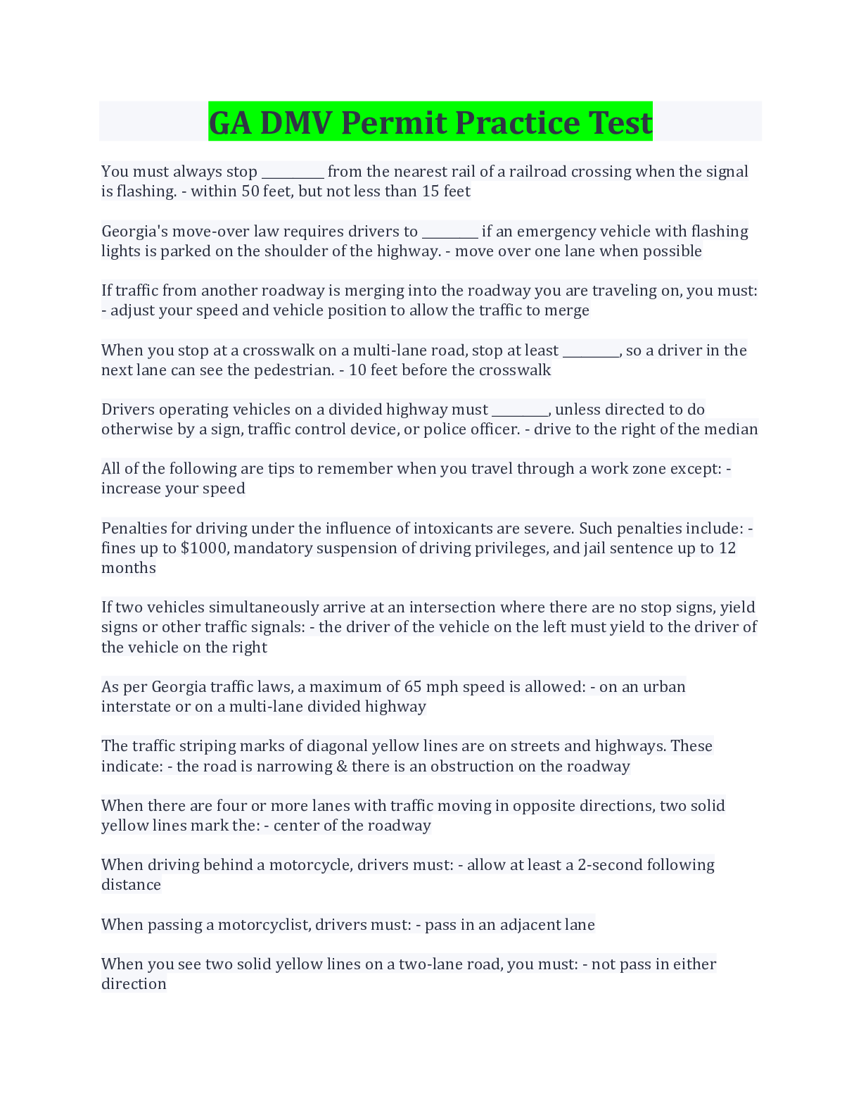 Engineering > EXAM > GA Driver's Permit Test Latest Update (All)