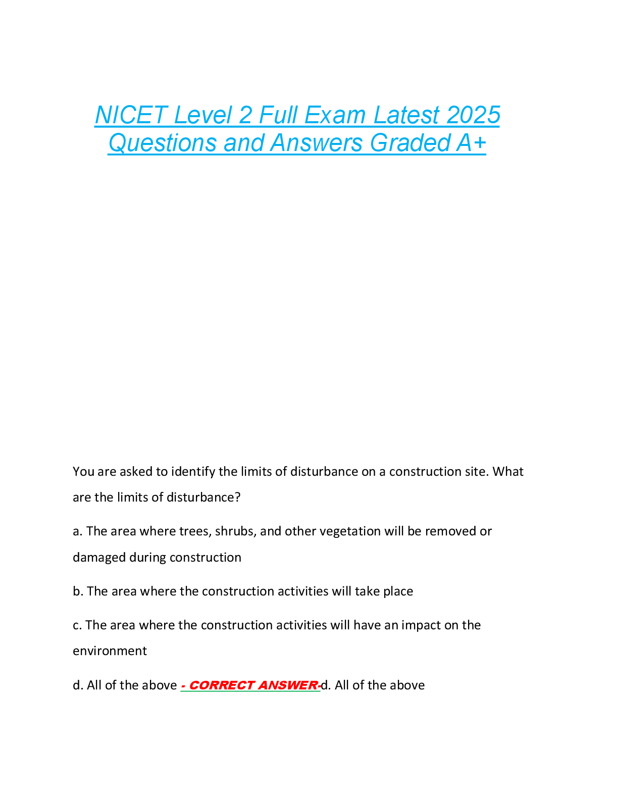 *NURSING > EXAM > NICET Level 2 Full Exam Latest 2025 Questions and Answers Graded A+