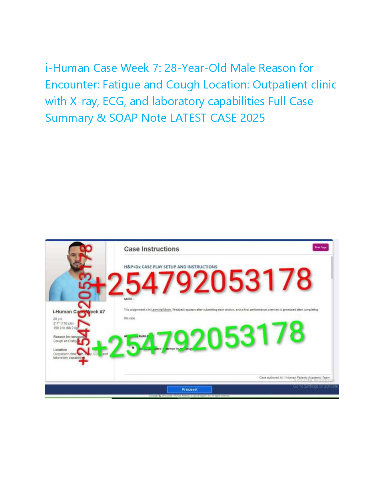 *NURSING > EXAM > i-Human Case Week 7: 28-Year-Old Male Reason for Encounter: Fatigue and Cough Location: Outpatient clinic with X-ray, ECG, and laboratory capabilities Full Case Summary & SOAP Note LATEST CASE 2025!!!