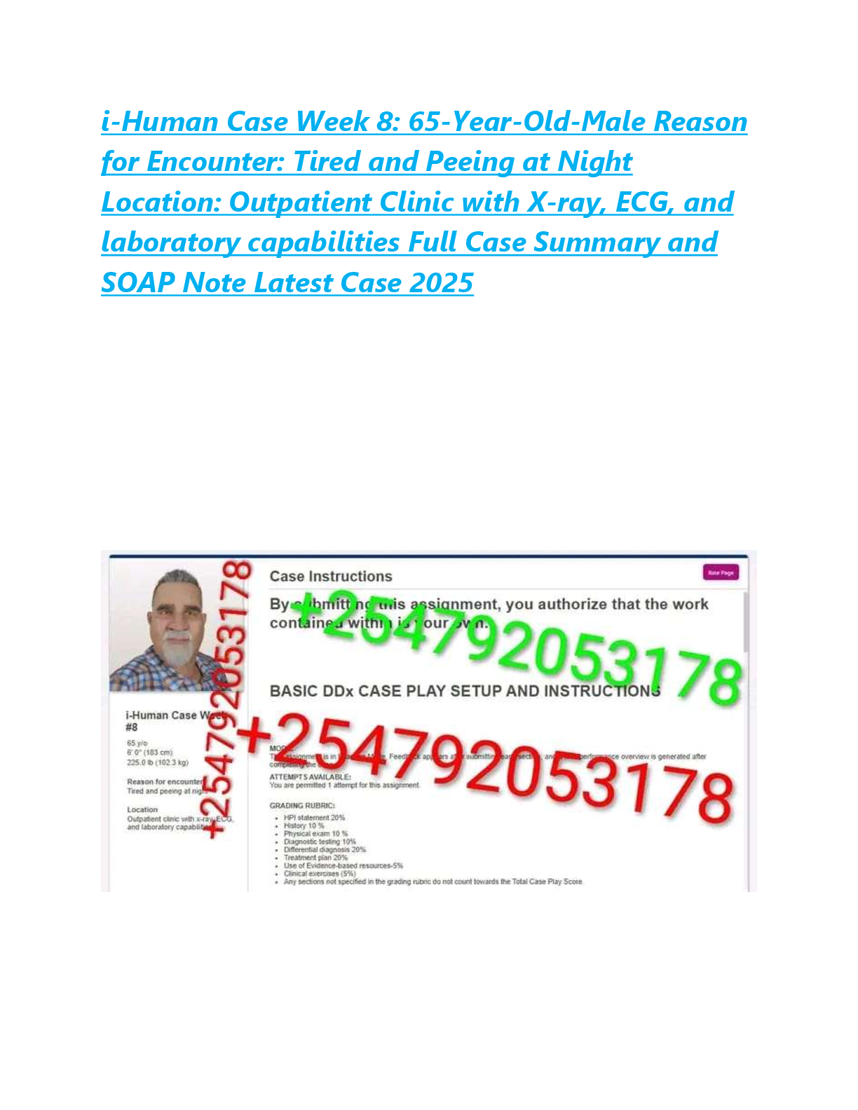 *NURSING > EXAM > i-Human Case Week 8: 65-Year-Old-Male Reason for Encounter: Tired and Peeing at Night Location: Outpatient Clinic with X-ray, ECG, and laboratory capabilities Full Case Summary and SOAP Note Latest Case 2025