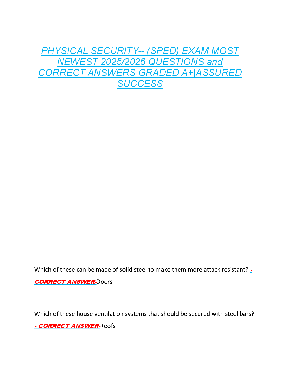 *NURSING > EXAM > PHYSICAL SECURITY-- (SPED) EXAM MOST NEWEST 2025/2026 QUESTIONS and CORRECT ANSWERS GRADED A+|ASSURED SUCCESS