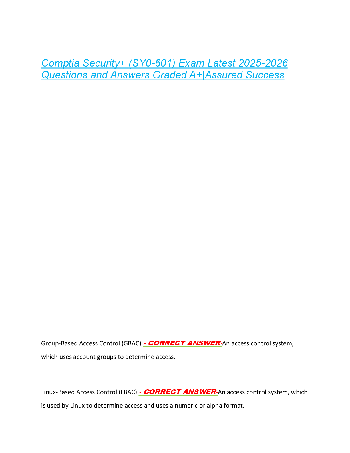 *NURSING > EXAM > Comptia Security+ (SY0-601) Exam Latest 2025-2026 Questions and Answers Graded A+|Assured Success
