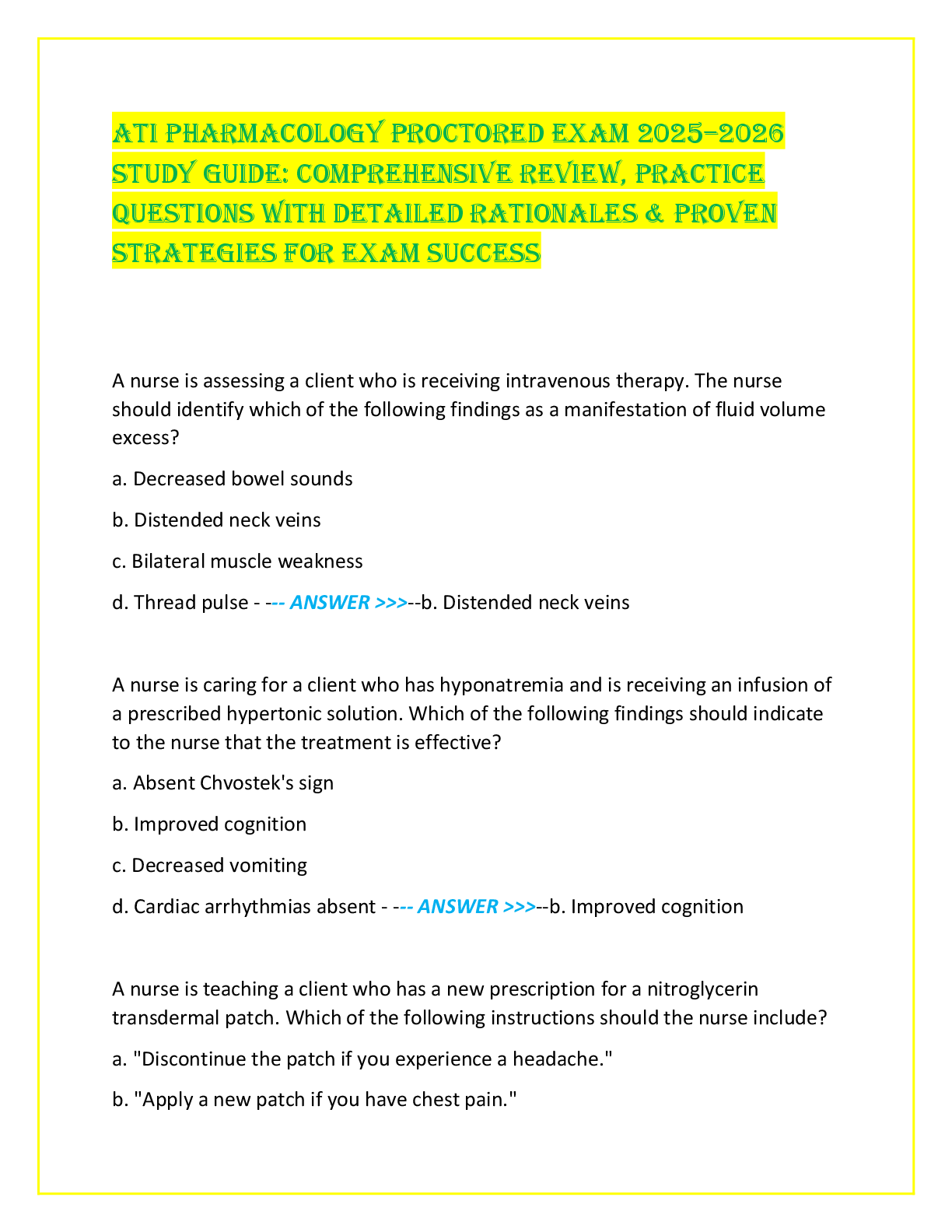 *NURSING > EXAM > ATI Pharmacology Proctored Exam 2025–2026 Study Guide: Comprehensive Review, Practice Questions with Detailed Rationales & Proven Strategies for Exam Success