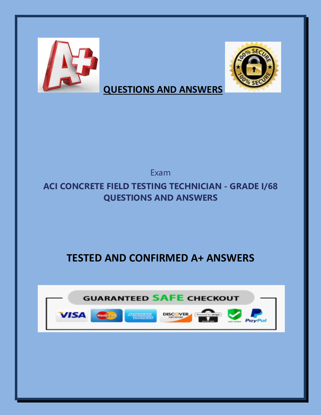 *NURSING > A-Level Question Paper > ACI CONCRETE FIELD TESTING TECHNICIAN - GRADE I68 QUESTIONS AND ANSWERS