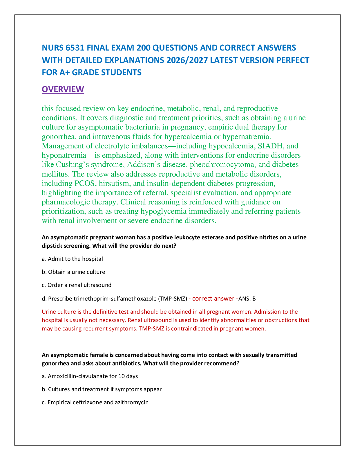 *NURSING > FINAL EXAM > NURS 6531 FINAL EXAM 200 QUESTIONS AND CORRECT ANSWERS WITH DETAILED EXPLANATIONS 2026/2027 LATEST VERSION PERFECT FOR A+ GRADE STUDENTS