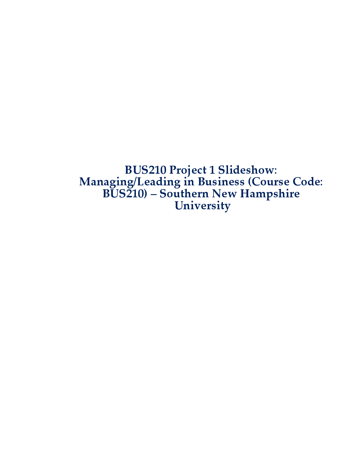 Business > STUDY GUIDE > BUS210 Project 1 Slideshow: Managing/Leading in Business (Course Code: BUS210) – Southern New Hampshire University