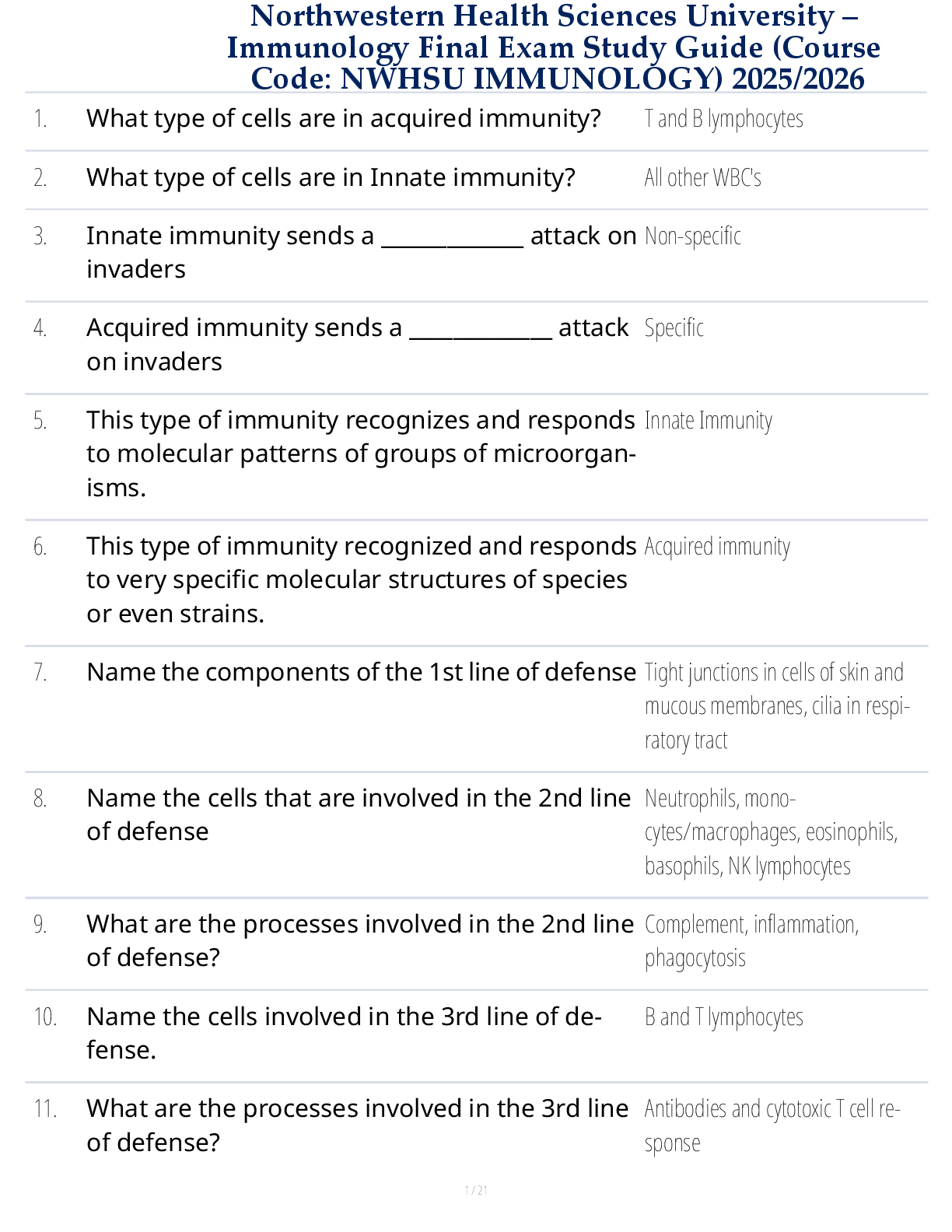 *NURSING > STUDY GUIDE > Northwestern Health Sciences University – Immunology Final Exam Study Guide (Course Code: NWHSU IMMUNOLOGY) 2025/2026