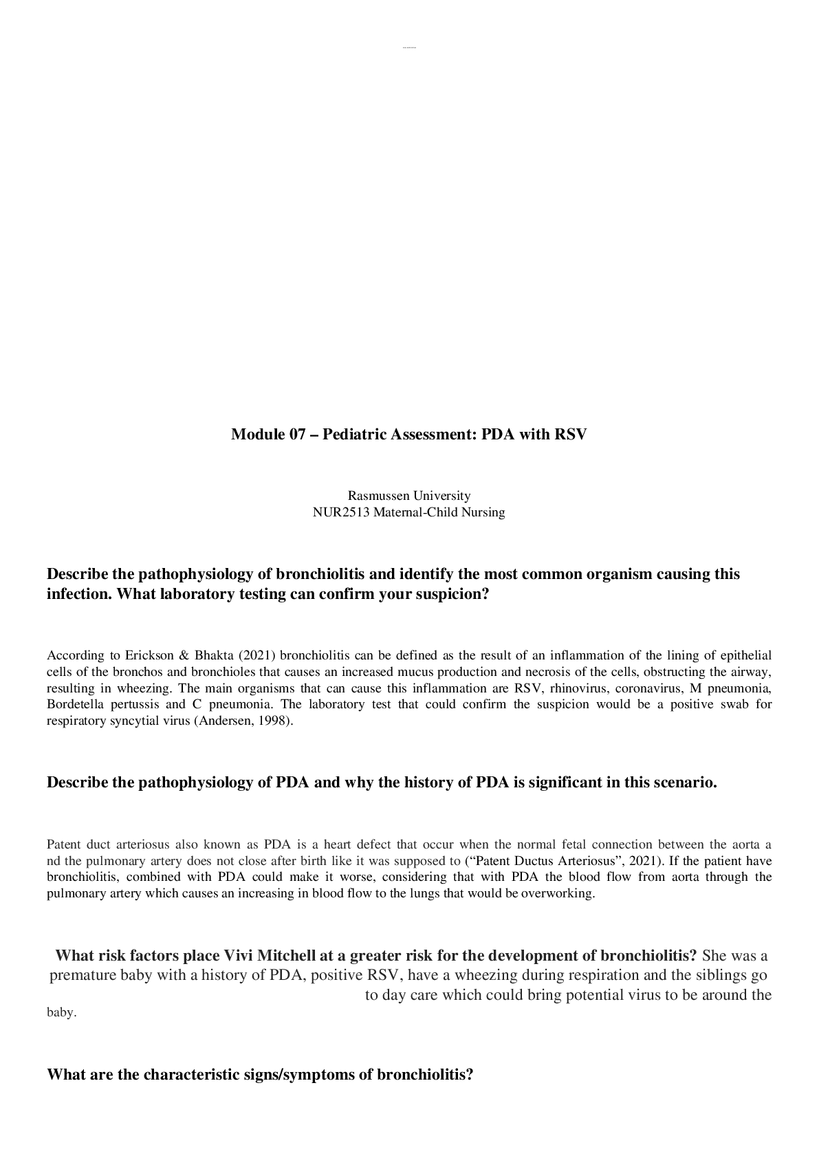 *NURSING > STUDY GUIDE > Module 07 Assignment Pediatric Assessment PDA With RSV