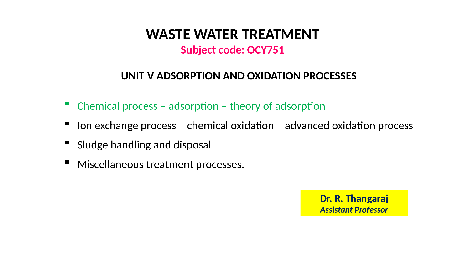 Chemistry > STUDY GUIDE > WASTE WATER TREATMENT Subject code: OCY751