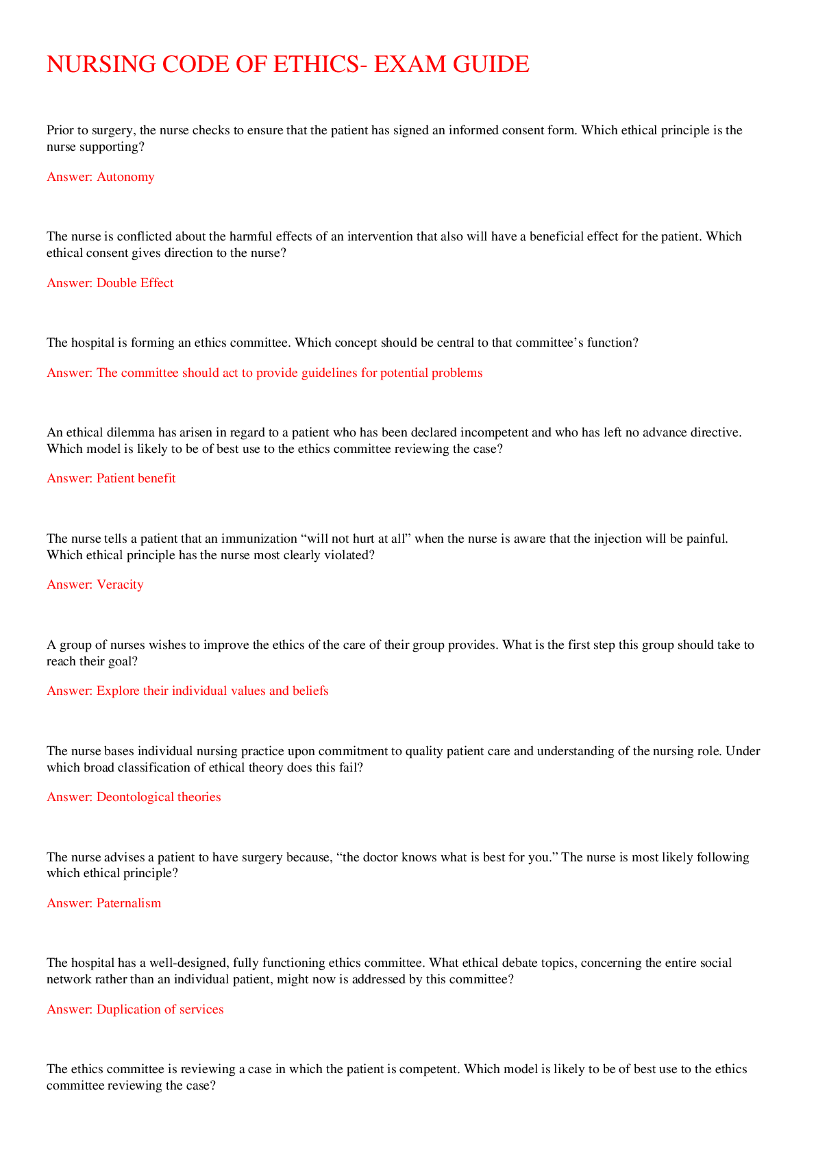*NURSING > STUDY GUIDE > NURSING- CODE OF ETHICS EXAM GUIDE