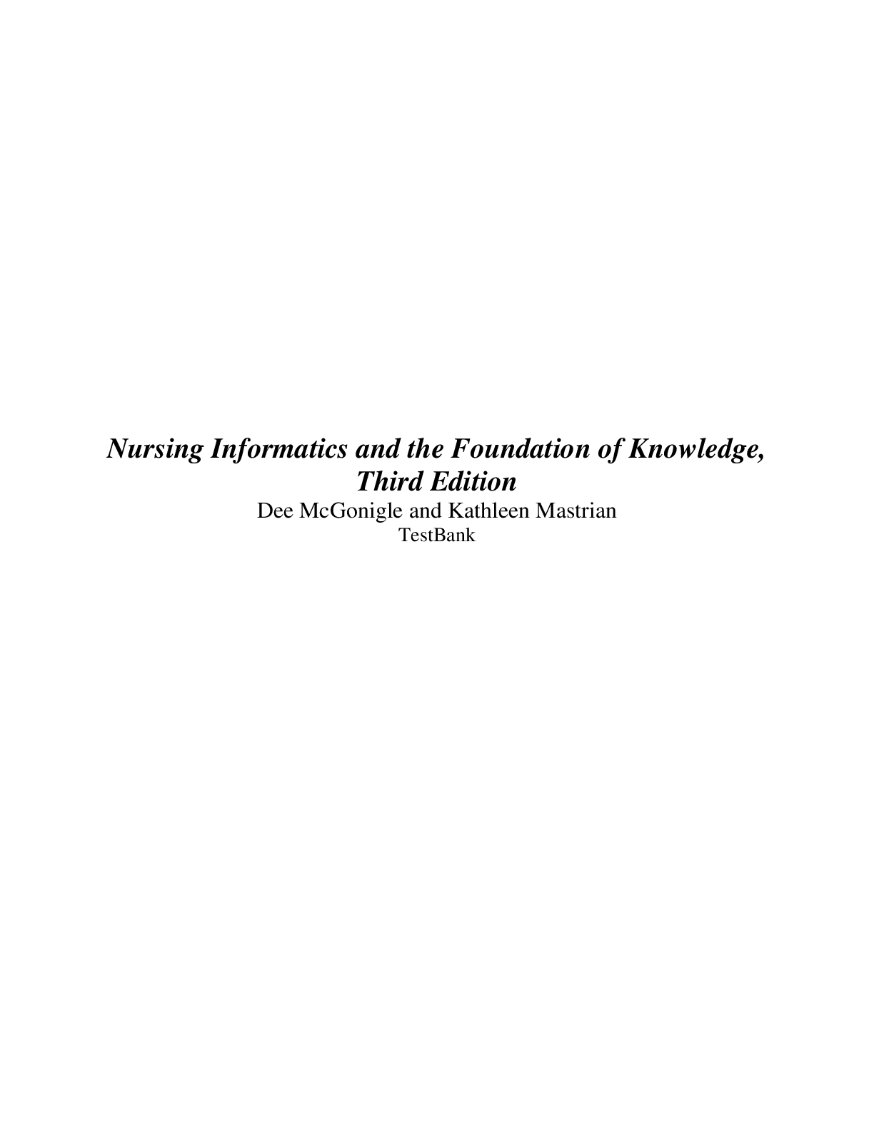 *NURSING > STUDY GUIDE > NURSING INFORMATICS AND THE FOUNDATION OF KNOWLEDGE 3RD EDITION MCGONIGLE TEST BANK