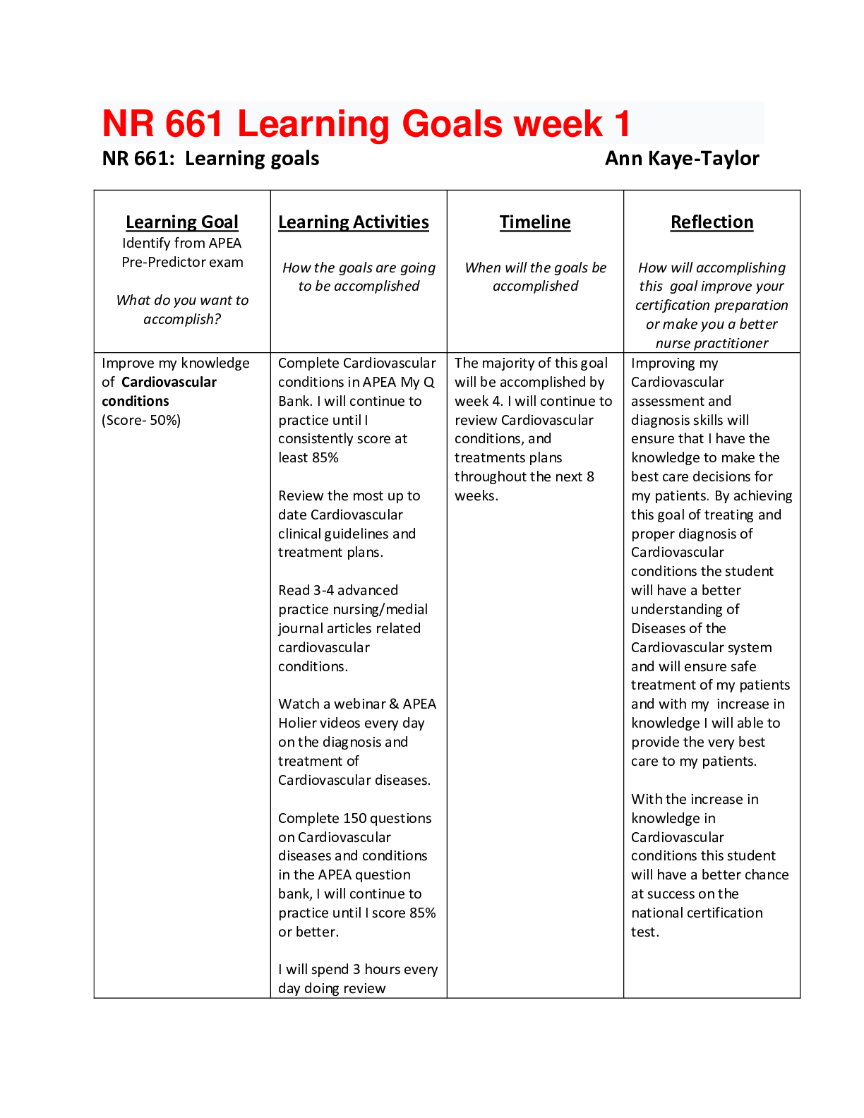 *NURSING > STUDY GUIDE > NR 661 Learning Goals week 1 Latest Guide;