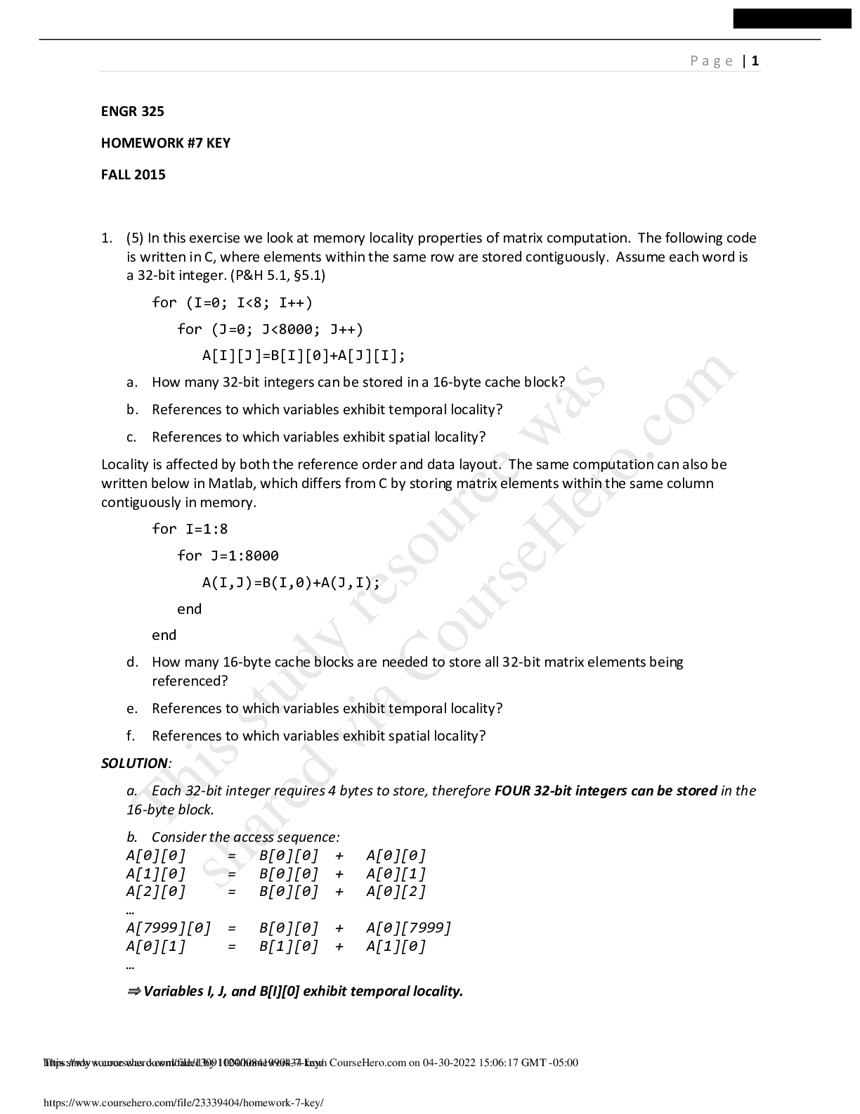 Biology > STUDY GUIDE > Exam (elaborations) ENGR 325 ENGR 325 HOMEWORK #7 KEY FALL 2015