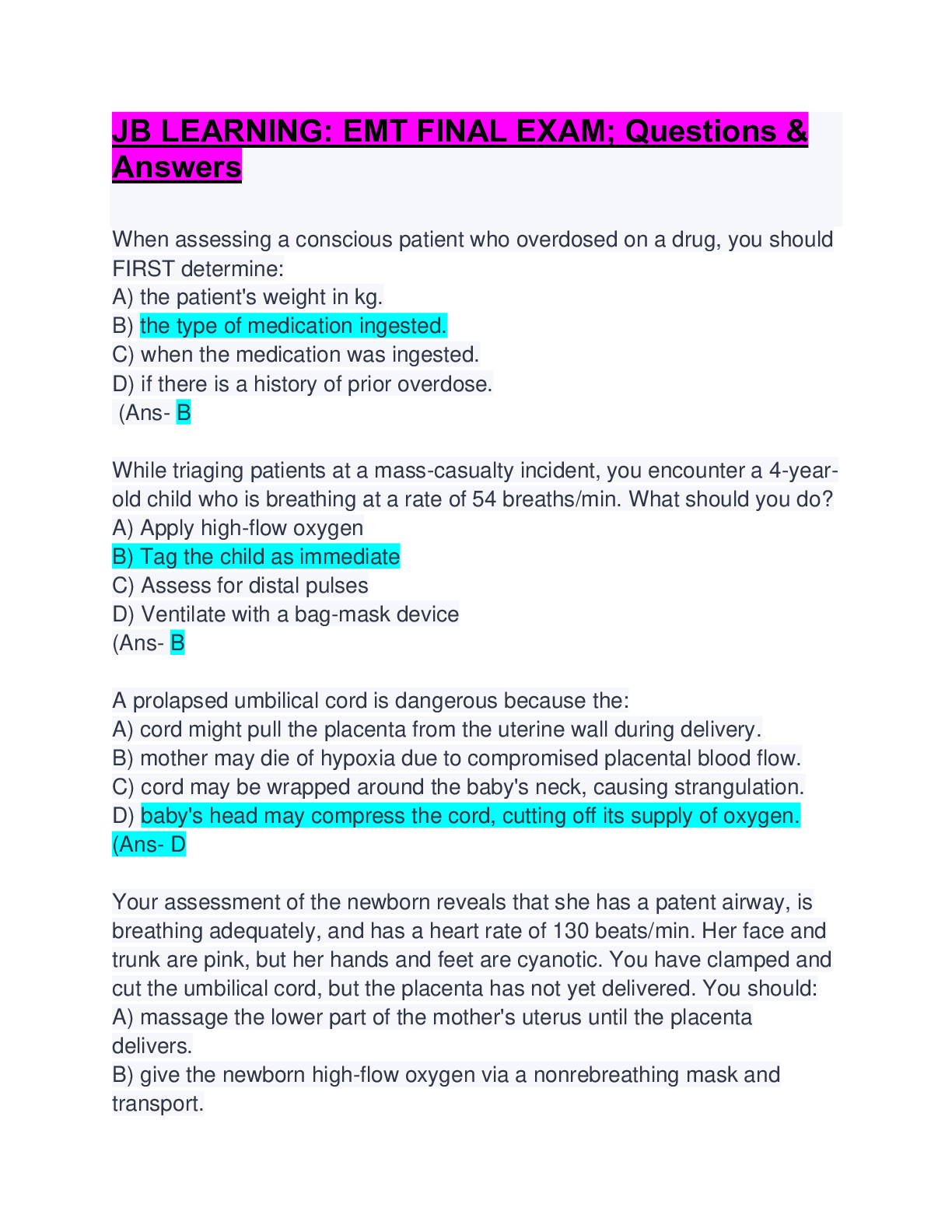 *NURSINGSTUDY GUIDE  > JB LEARNING: EMT FINAL EXAM GUIDE (DOWNLOAD TO SCORE A)