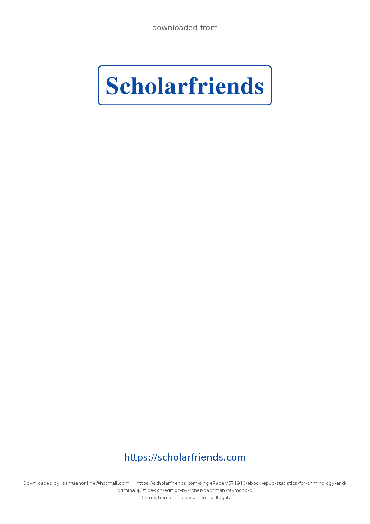 Social Sciences > ePublications [PDF] > eBook PDF Statistics for Criminology and Criminal Justice 5th Edition By Ronet Bachman, Raymond Paternoster, Theodore Wilson